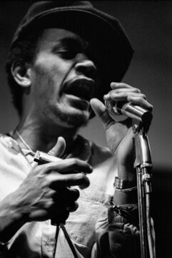 L’harmoniciste afro-américain Sugar Blue en concert avec son groupe au jazz club New Morning à Genève, Suisse, en mars 1981. Sugar Blue a fait ses classes à Chicago auprès de Muddy Waters, Johnny Shines et Lousiana Red. Suivant le conseil de Memphis Slim qui s’était établi à Paris, il est parti pour la France à la fin des années 1970. Il s’est distingué pour avoir joué à l’harmonica l’intro de Miss You sur l’album Some Girls des Rolling Stones (1978).