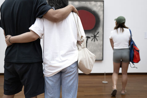 Joan Miró, Painting 1953, National Museum of Western Art in Tokyo, Japan, on 19 September 2024. Built in 1959 by the Franco-Swiss architect Le Corbusier and enlarged since, the museum houses a powerful painting by Joan Miró. Its red disc takes visitors back to the symbolism of the rising sun, the emblem of the Japanese national flag.
