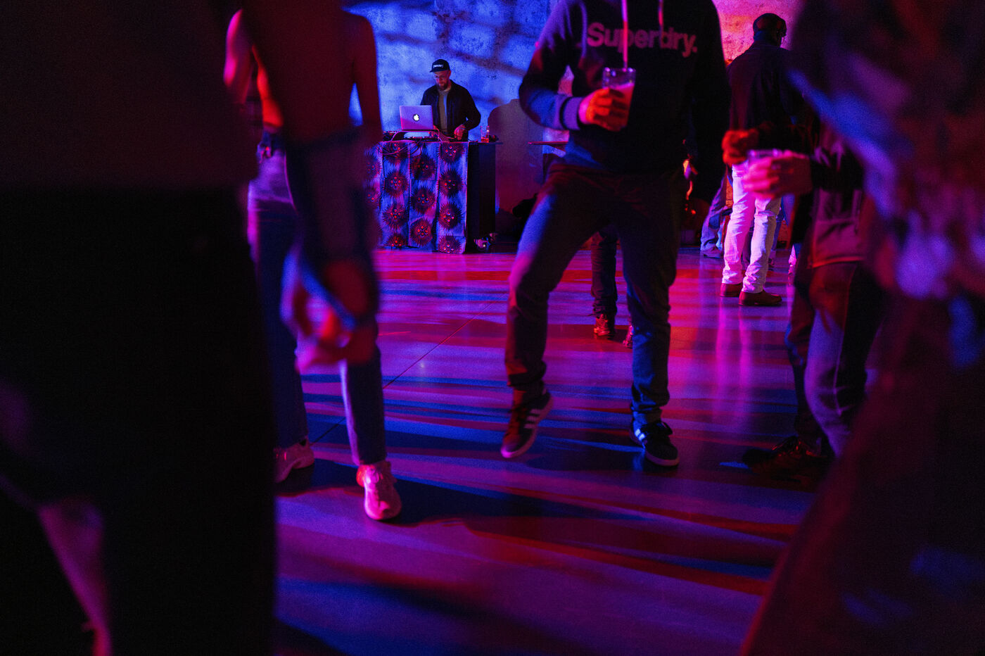 DJ Gioul mixe au jazz club Les Jumeaux à Lausanne en Suisse le 30 novembre 2024. Gilles Dupuis de son premier nom est le directeur du festival JazzOnzePlus qui a lieu chaque année au début novembre à Lausanne et le batteur du groupe d’afrobeat Professor Wouassa.
