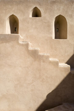 Listed as a UNESCO World Heritage Site, the historic fortresses and villages of the Sultanate of Oman are built of earth with a few wooden support elements. Staircases, niches, openings and secret passageways are integrated into the thickness of the monolithic construction.