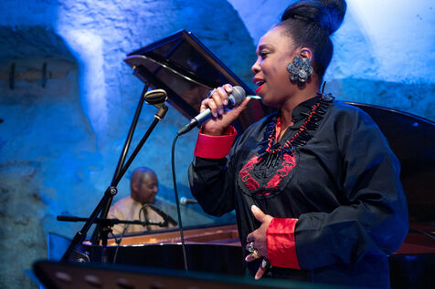 La chanteuse cubaine Doris Lavin interprète El Feeling Cubano en duo avec le pianiste Caramelo de Cuba (Javier Alexis Gutiérrez Massó) au Château de Cormondrèche. El Filin Cubano est un style musical romantique né à Cuba dans les années 1940 qui mélange trova, jazz et boléro.
