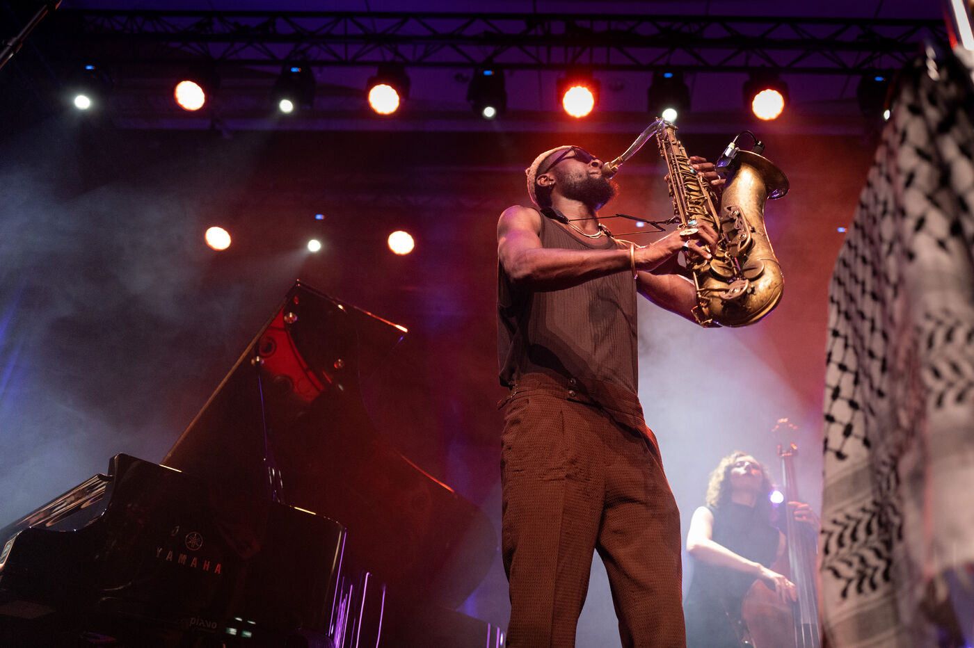 Le compositeur et saxophoniste Isaiah Collier, basé à Chicago, en concert au Montreux Jazz Festival 2025 avec le groupe The Chosen Few, comprenant Liya Grigoryan (pno), Emma Dayhuff (bass) et Tim Regis (drms).