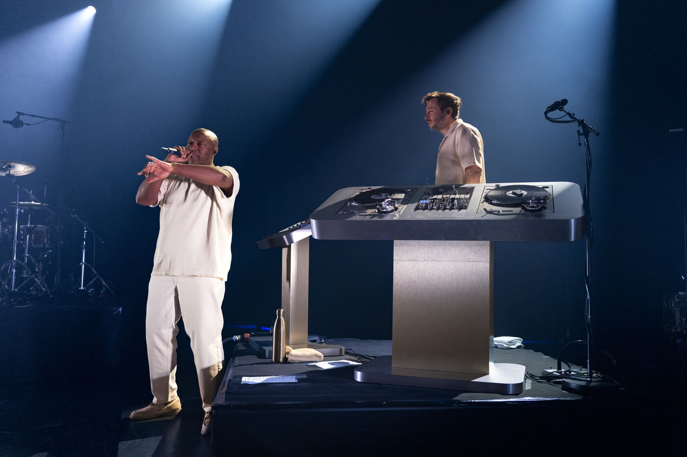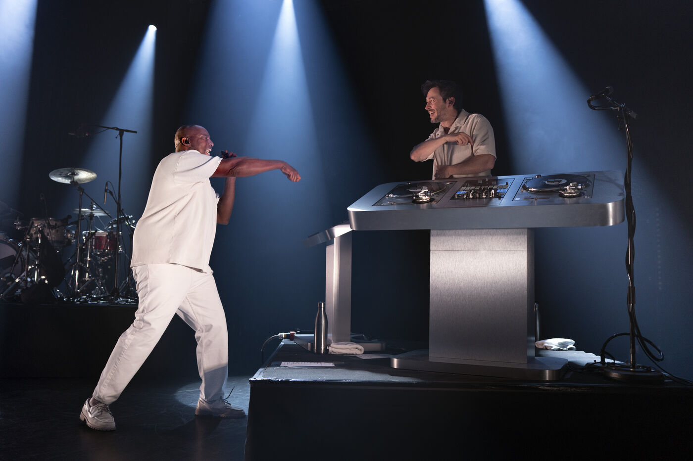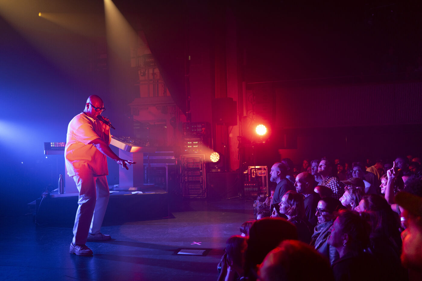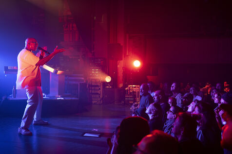 Le rappeur et « poémien » franco-malien Oxmo Puccino en concert au 1066 Festival à Epalinges, en Suisse, accompagné du DJ Mr Viktor.