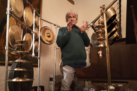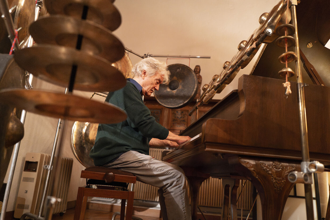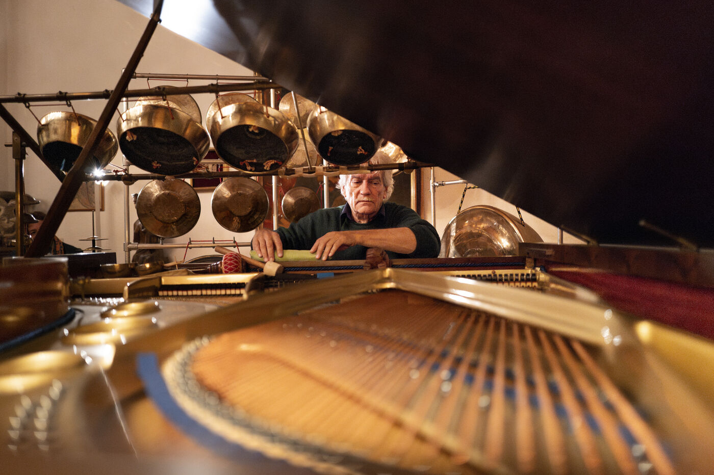 Le pianiste et compositeur suisse François Lindemann en piano solo avec gongs à l’Espace Held, en Suisse. Ces gongs de Java, du Myanmar et de Kunming (Chine) résonnent en harmonie avec un piano arrangé avec des chopsticks, pour donner, selon Lindemann, « Un son traditionnel de Gamelan de Yogyakarta ».