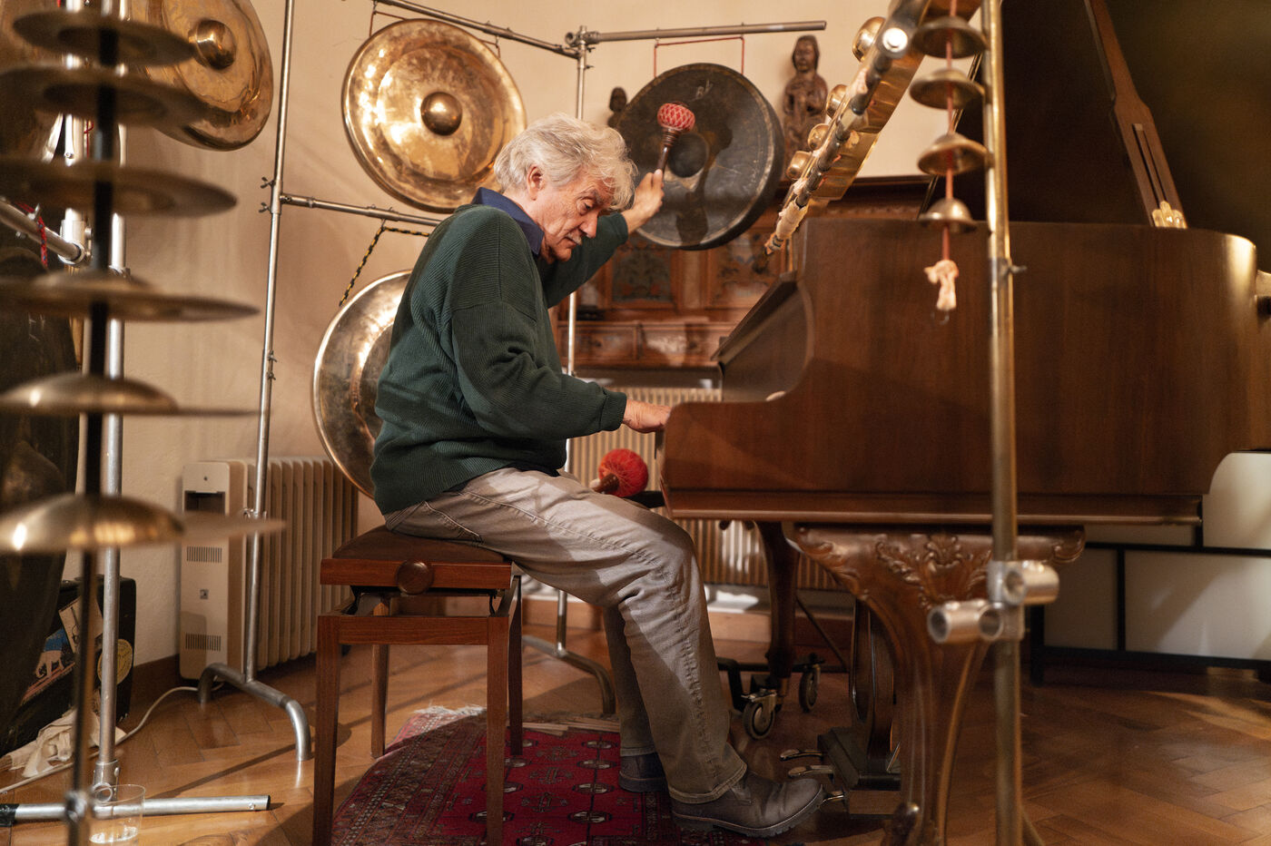 Swiss pianist and composer François Lindemann performed a solo piano recital with gongs at Espace Held in Switzerland. These gongs from Java, Myanmar, and Kunming (China) resonate in harmony with a piano arranged with chopsticks to produce, according to Lindemann, « A traditional Yogyakarta Gamelan sound. »