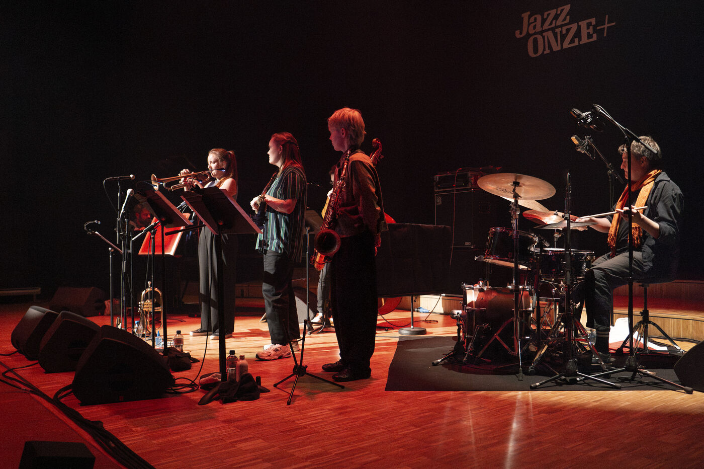 Kinora 6tet performed their latest album « Eggshell - End Of Time » at the JazzOnze+ Festival 2025. Based in Bern, Switzerland, Kinora offers a musical journey to the frontiers of jazz, inspired by colorful compositions. The 6tet is made up of Sonja Ott (tp comp), Amalie Dahl and Helena Kay (sax), François Lana (pno), Rafael Jerjen (bass), and Philipp Leibundgut (drms).