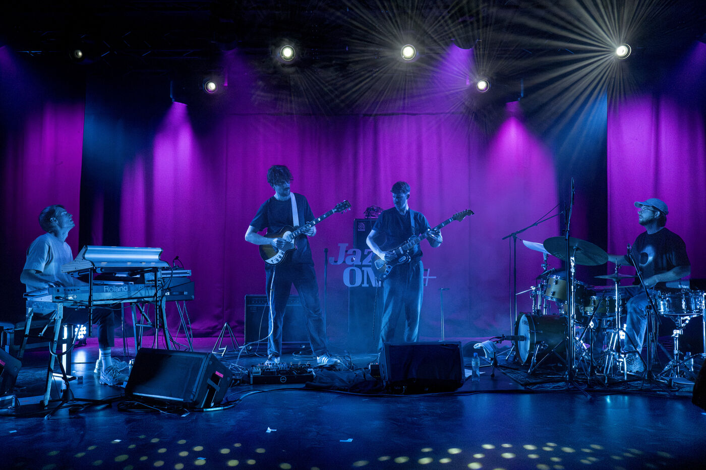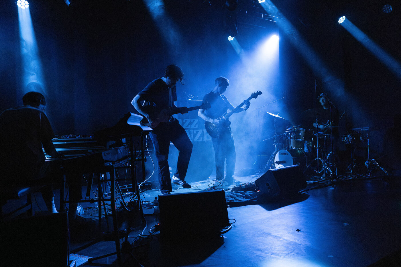 Le trio suisse de jazz Loophole en concert au JazzOnze+ Festival 2025, comprenant Claude Stucki (gtr), Michel Spahr (bass) et David Krähenbühl (drms), avec Mathieu Friz (key) comme invité.