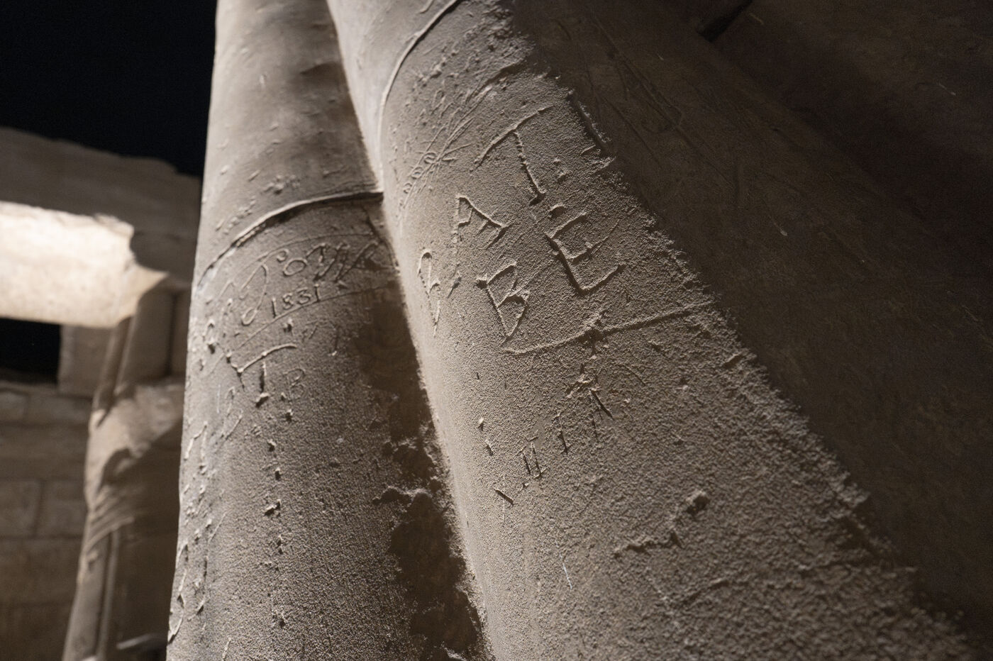 Fièvre du samedi soir après le coucher du soleil dans le temple d’Amon à Louxor. Les touristes affluent en grappes compactes dans le temple, en suivant leur guide et en enchaînant les selfies.