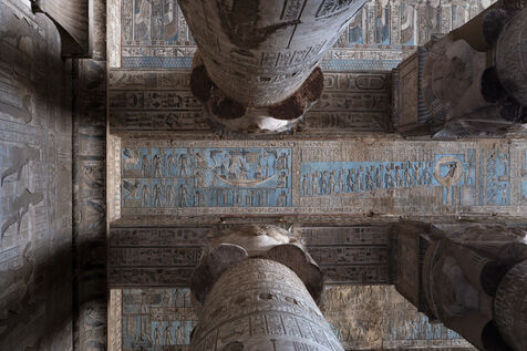 Tourists follow their guide and snap selfies in the Temple of Hathor, goddess of love and beauty, in Dendera.