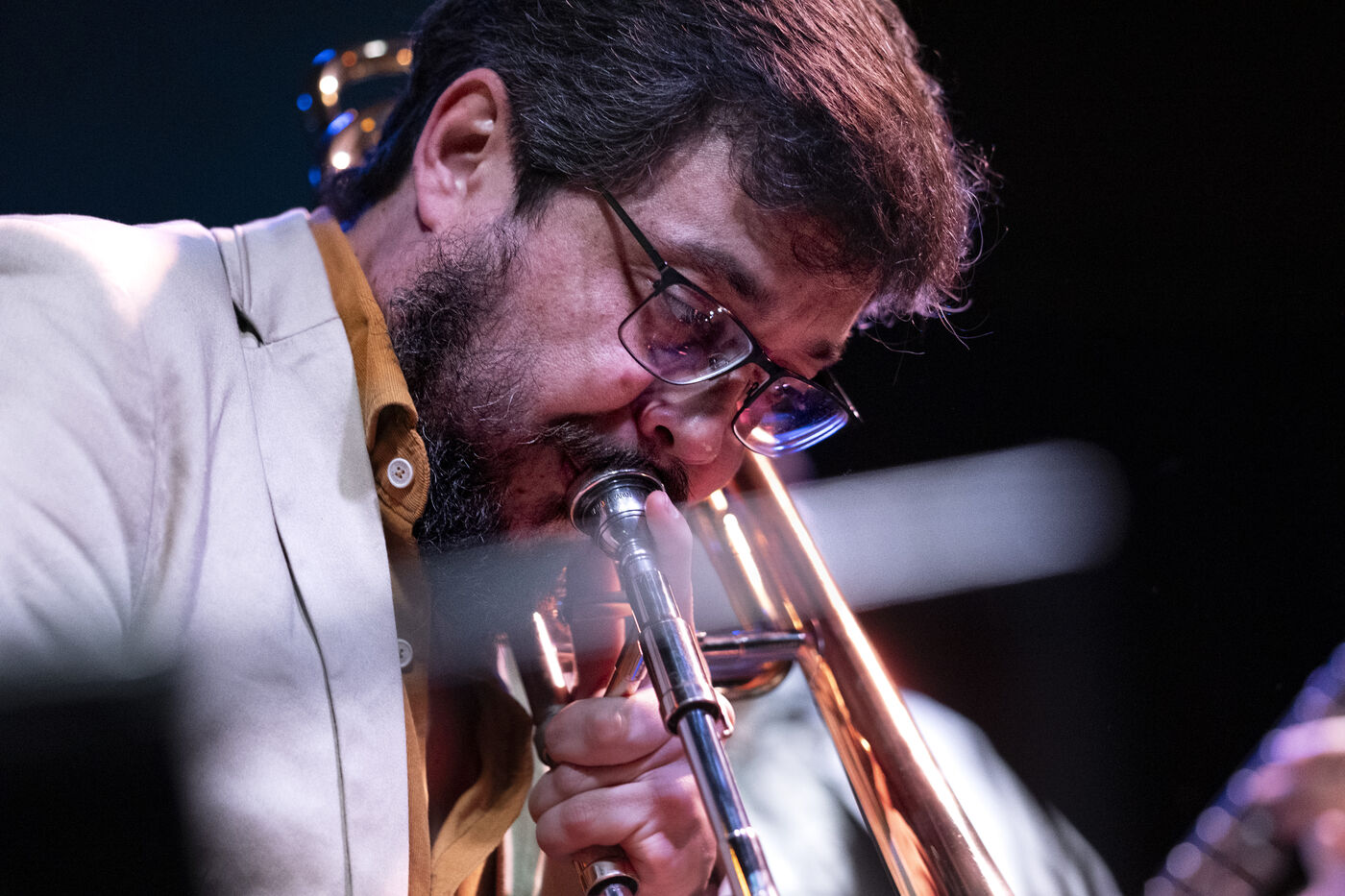 Former members of Brazilian trombonist Raul de Souza’s band (he passed away in 2021) paid a heartfelt tribute to him at Club Chorus, featuring Sérgio Coelho (tb), Julien Leprince-Caetano (pno), Glauco Sölter (bass), and Zaza Desiderio (drms).