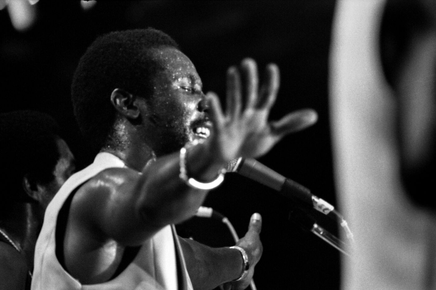 Le groupe de roots reggae Toots & the Maytals, avec le chanteur Toots Hibbert, en concert à la Reggae Night du Montreux Jazz Festival en 1981.