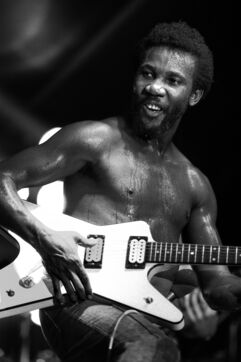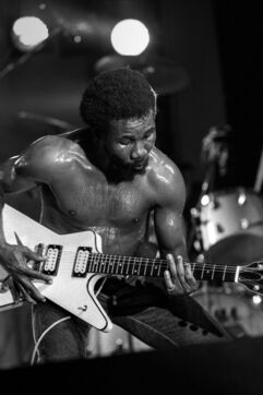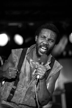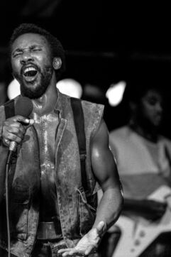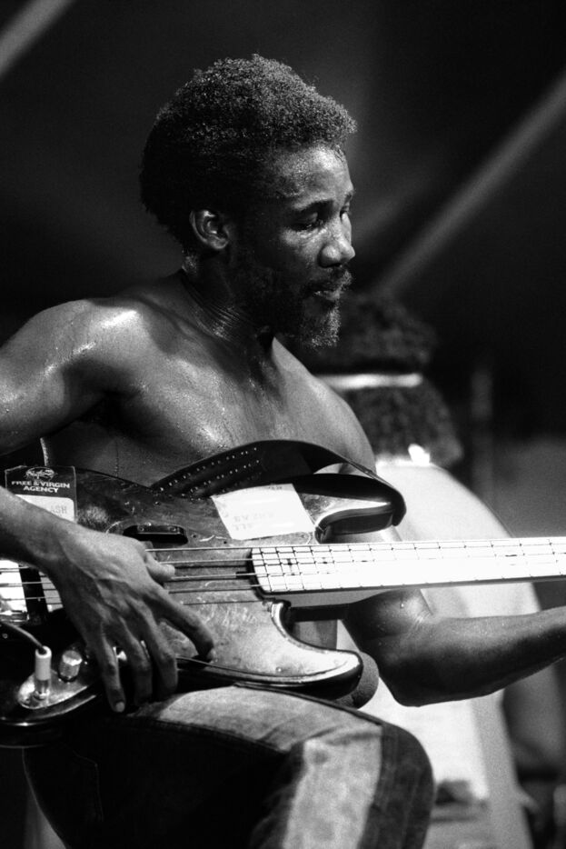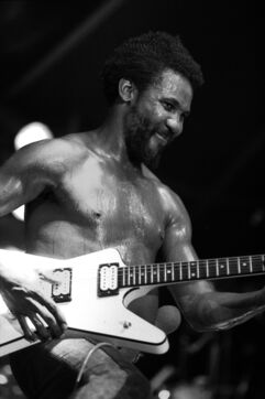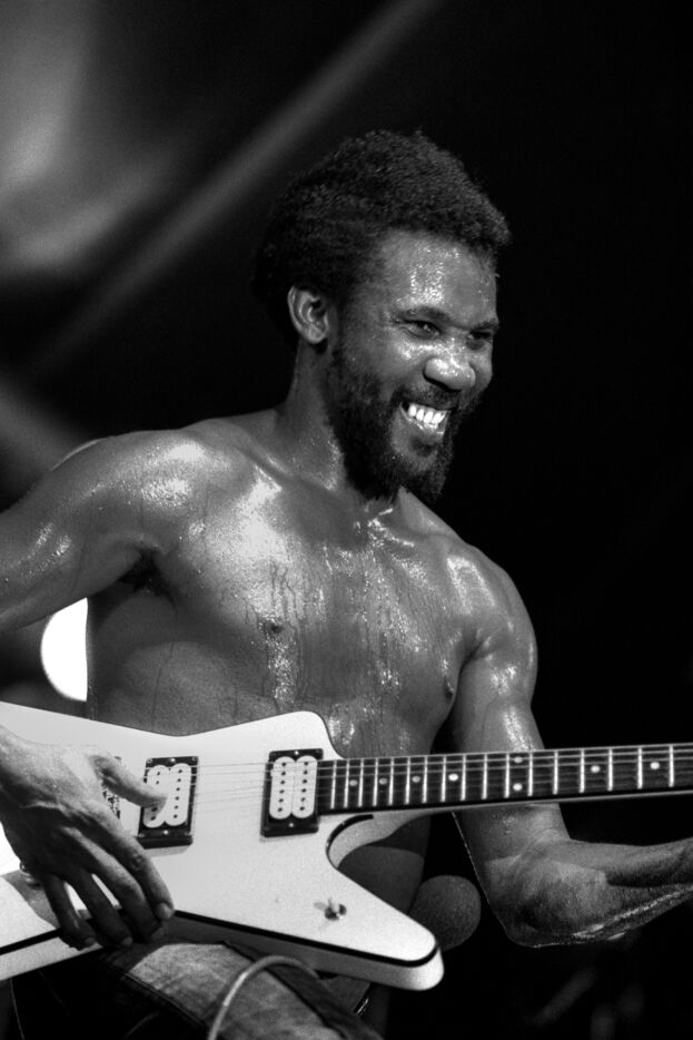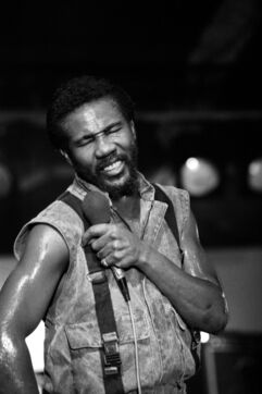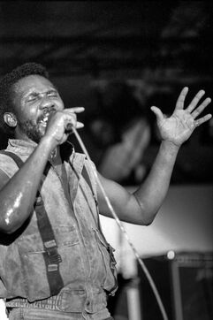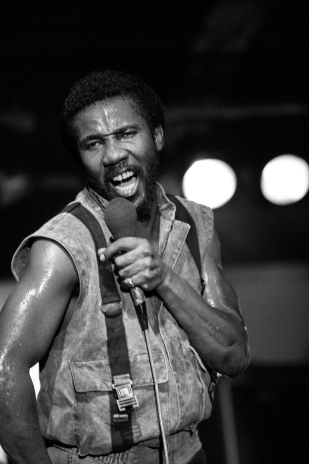 Le groupe de roots reggae Toots & the Maytals, avec le chanteur Toots Hibbert, en concert au Paléo Festival Nyon en 1985.