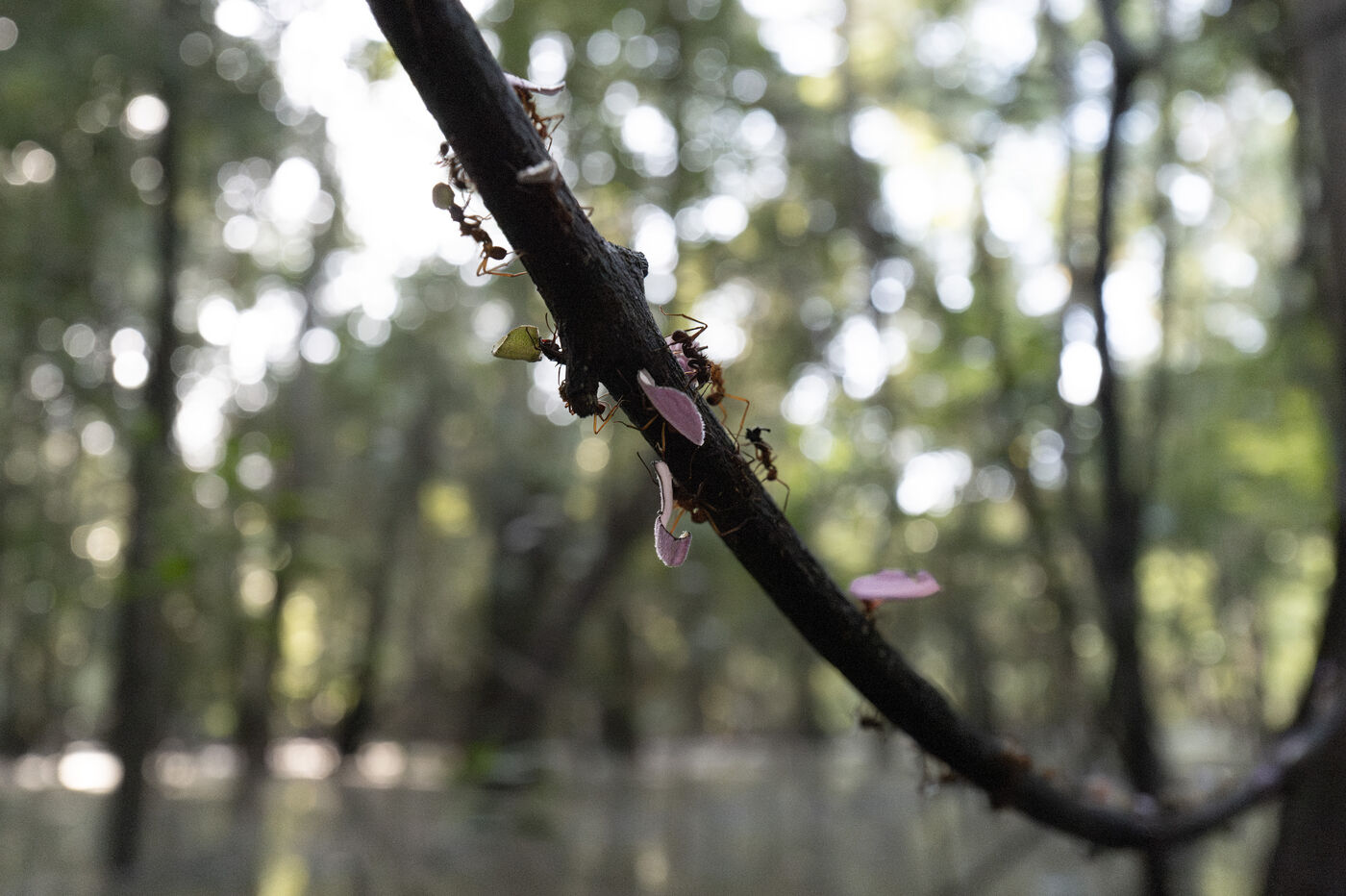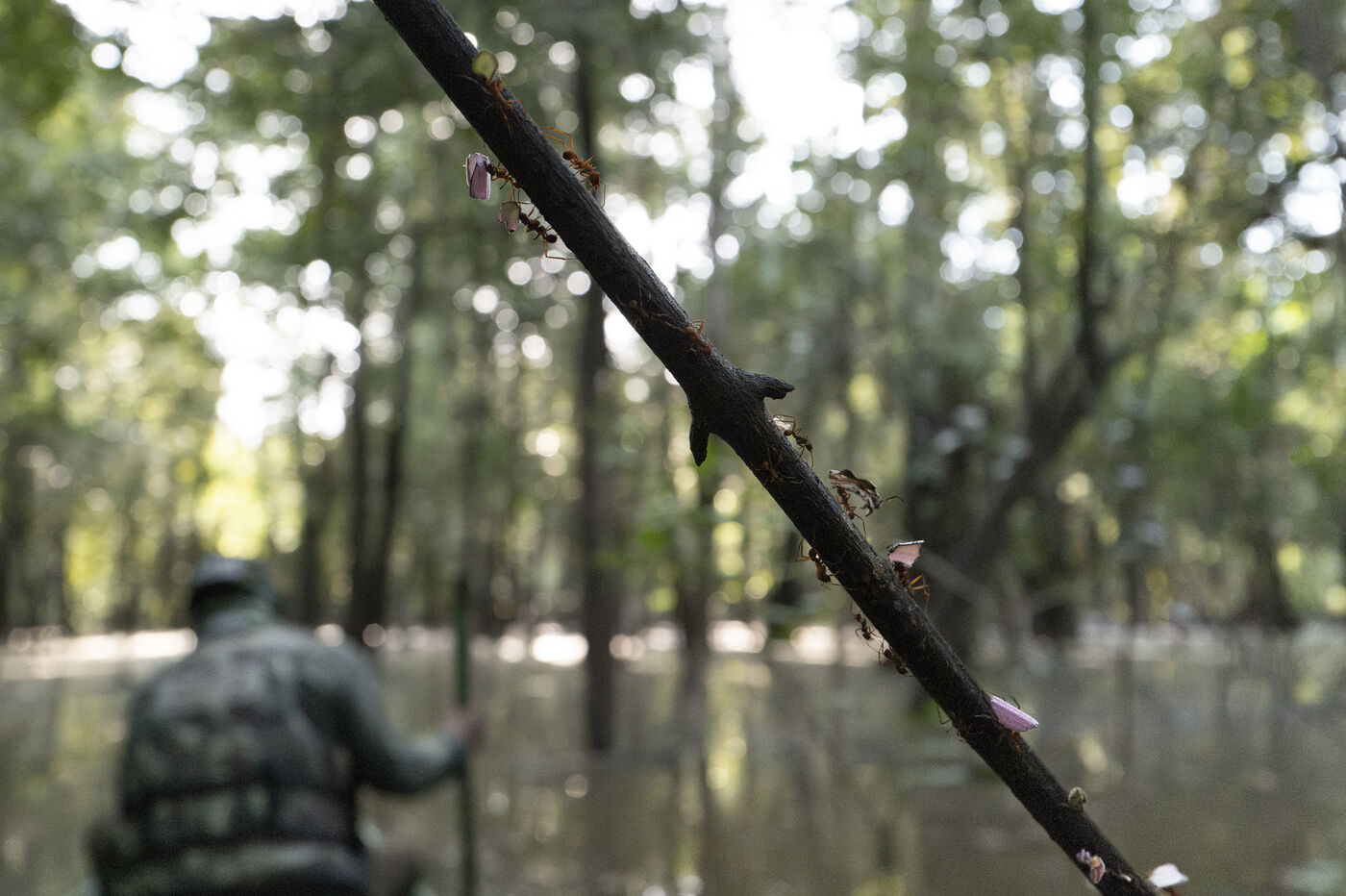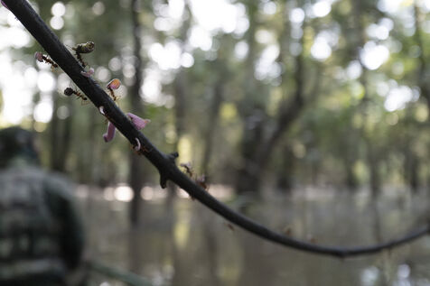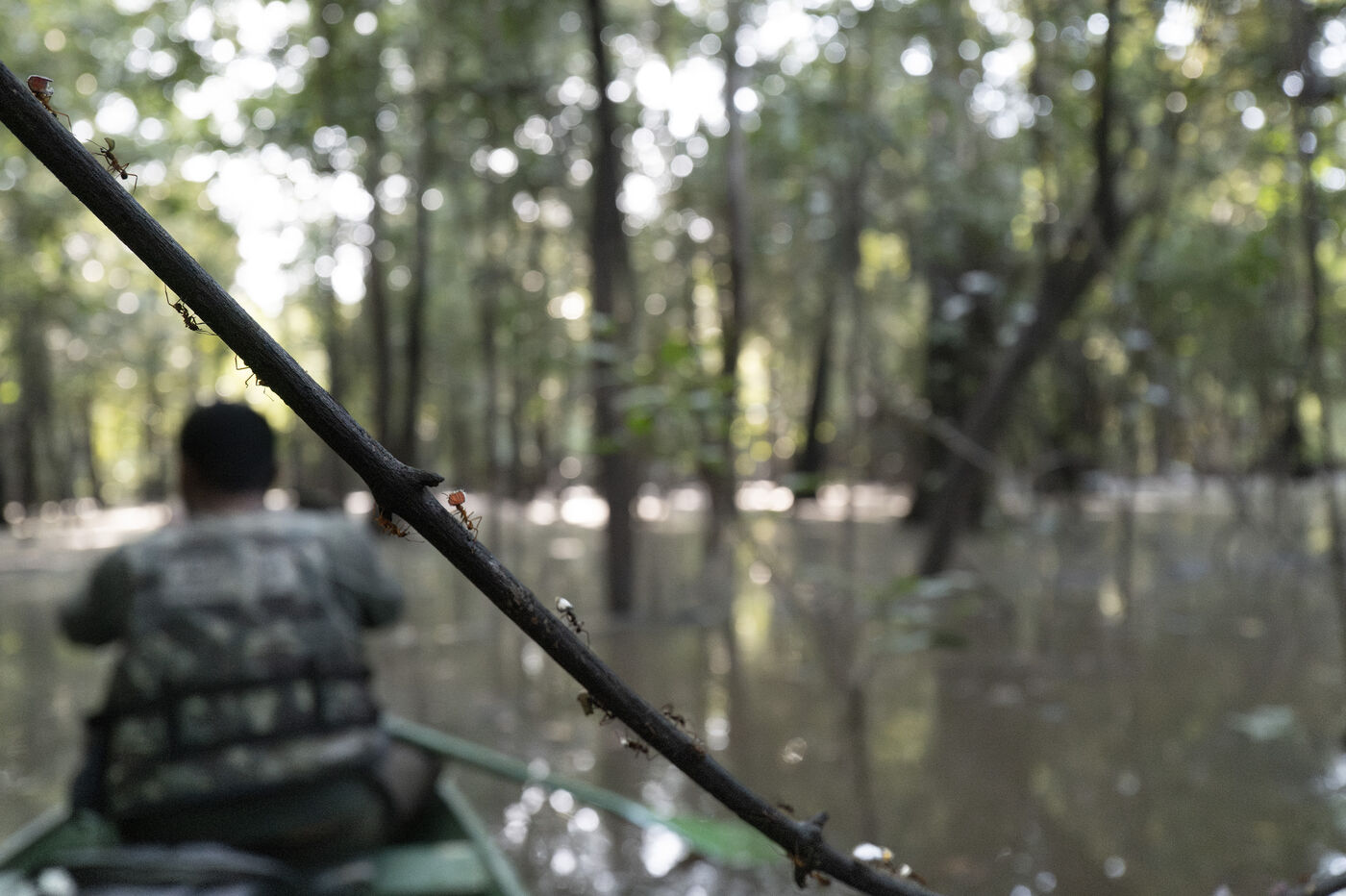 Fauna of the fhe flooded várzea and igapó forest in the Brazilian Amazon. The Mamirauá Sustainable Development Reserve, located about 600 km upstream from Manaus at the confluence of the Solimões (Amazon River) and the Japurá rivers, is shaped by seasonal floods that can reach up to 11 meters, turning the canopy into a lake-like landscape where fauna and flora have remarkably adapted.