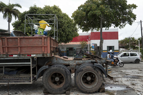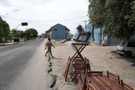 Tourisme populaire et manèges forains à l’ancienne dans la petite ville côtière brésilienne d’Alcobaça, au sud de l’Etat de Bahia.