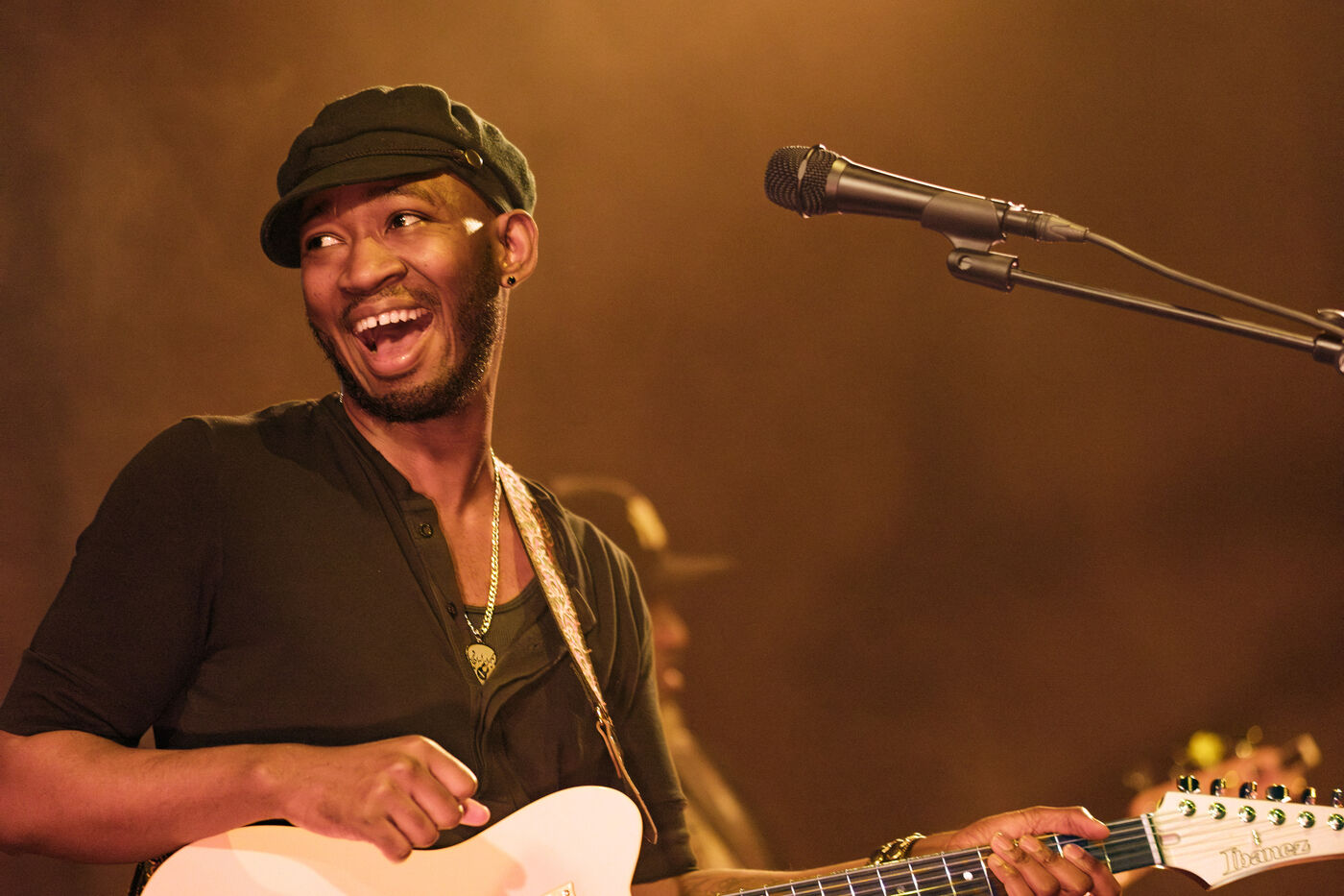 American guitarist, singer-songwriter, and producer Isaiah Sharkey performed at the jazz club Les Jumeaux, in a 4tet with Jeremy Tim Tribitt (key), Maurice Fitzgerald (bass), and Eric Johnson (drms).