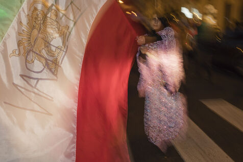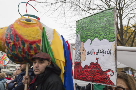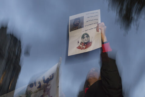 Le 27 novembre 2022, le rassemblement et la marche de Port Royal au Panthéon à Paris en soutien au peuple iranien qui manifeste suite a la mort de Jina Mahsa Amini, organisé par le collectif Femme Vie Liberté. France, Paris, 2022-11-27. Photographie de Pascal SONNET / Hans Lucas.