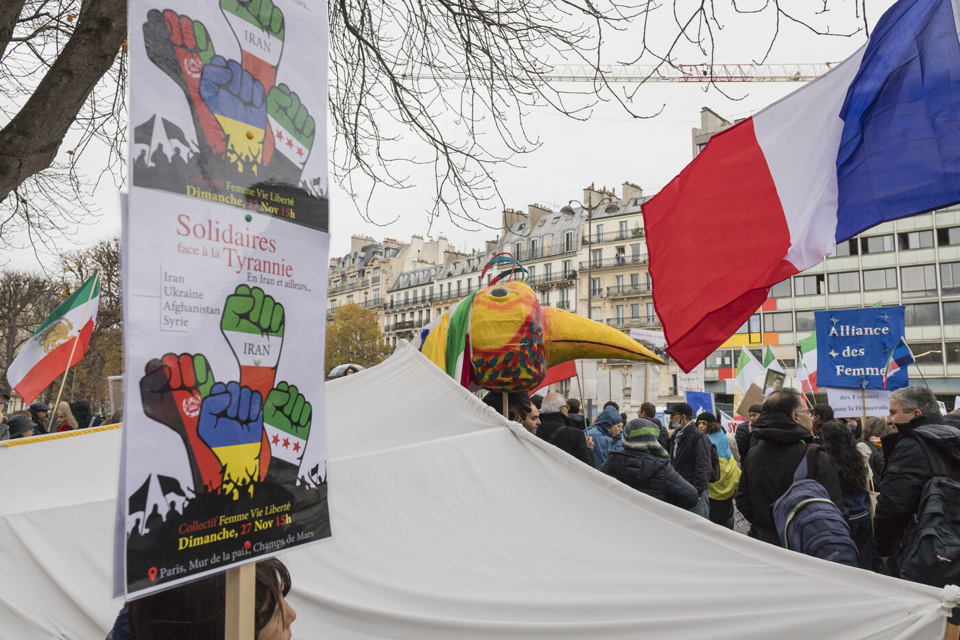 On November 27, 2022, the rally and march from Port Royal to the Pantheon in Paris in support of the Iranian people who are demonstrating following the death of Jina Mahsa Amini, organized by the collective Woman Life Freedom.