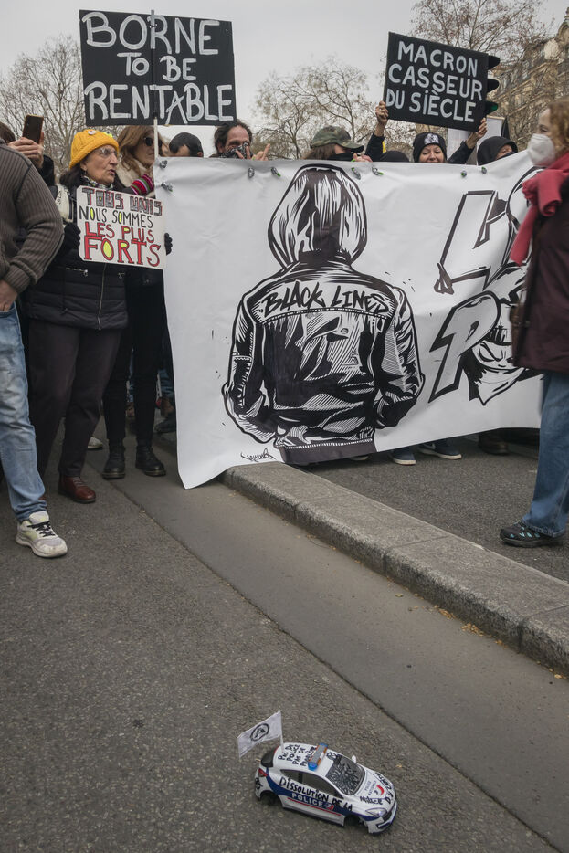 Fourth day of mobilisation called by the inter-union for this strike on 11 Febrary 2023. Tens of thousands of people in the streets of Paris to protest against the retirement reform presented by the government.