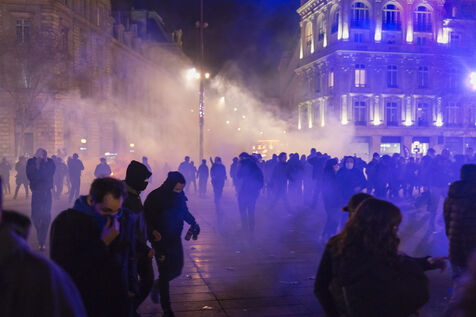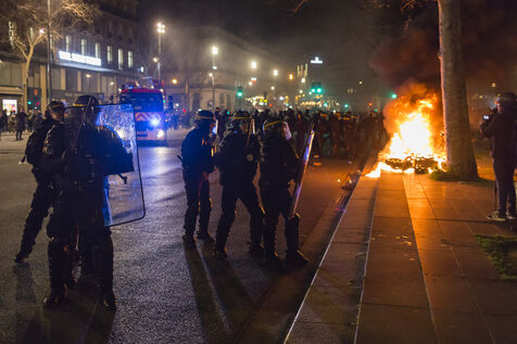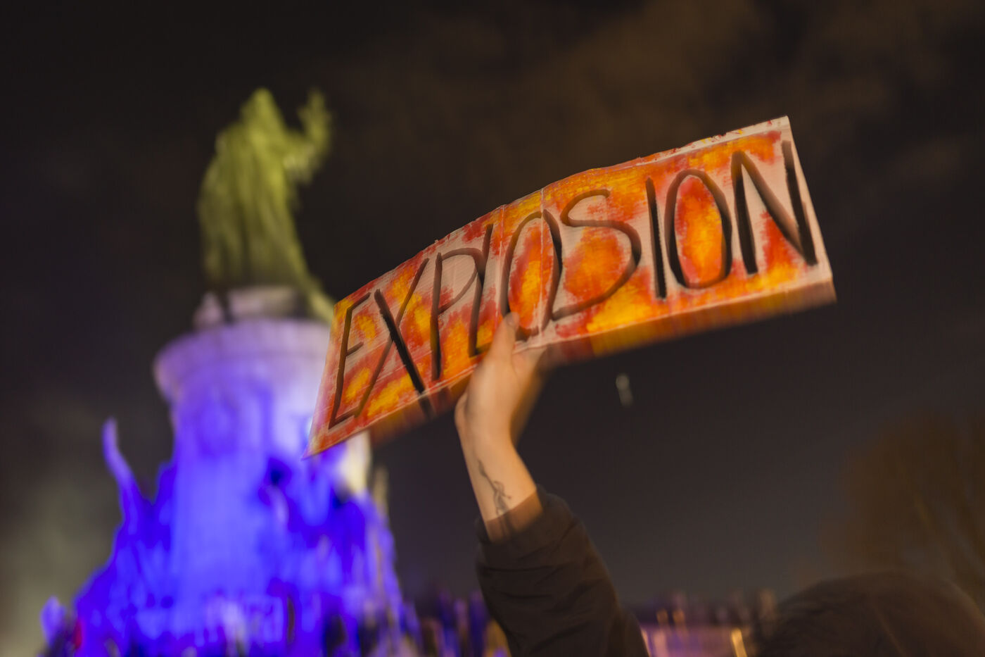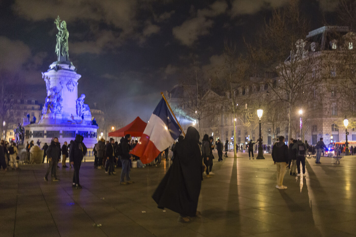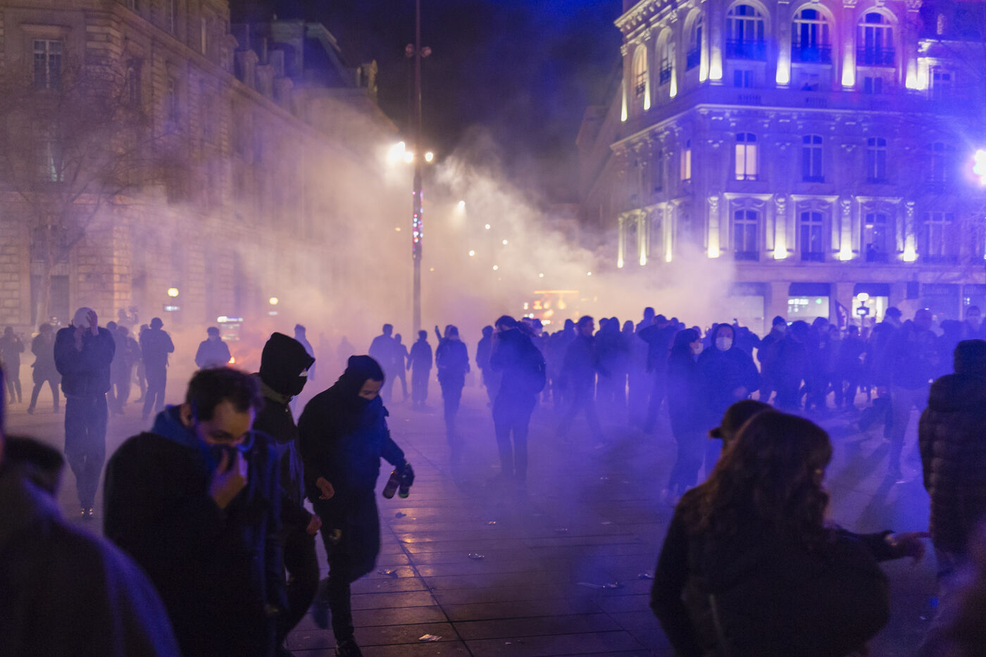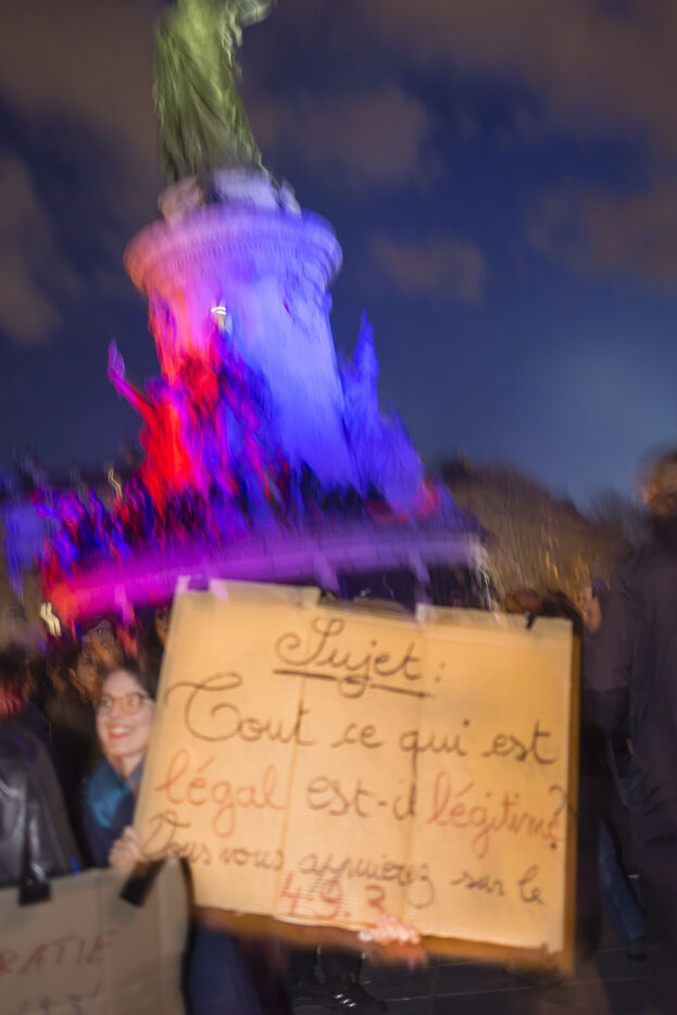 New rally against the retirement reform, this Tuesday 21 March 2023, place de la République in Paris. Clashes took place between police and demonstrators, the police used tear gas.