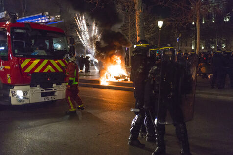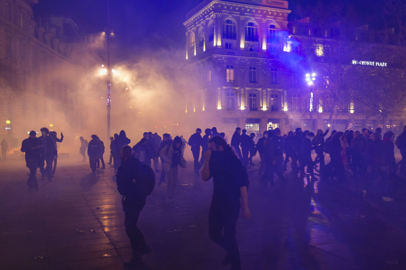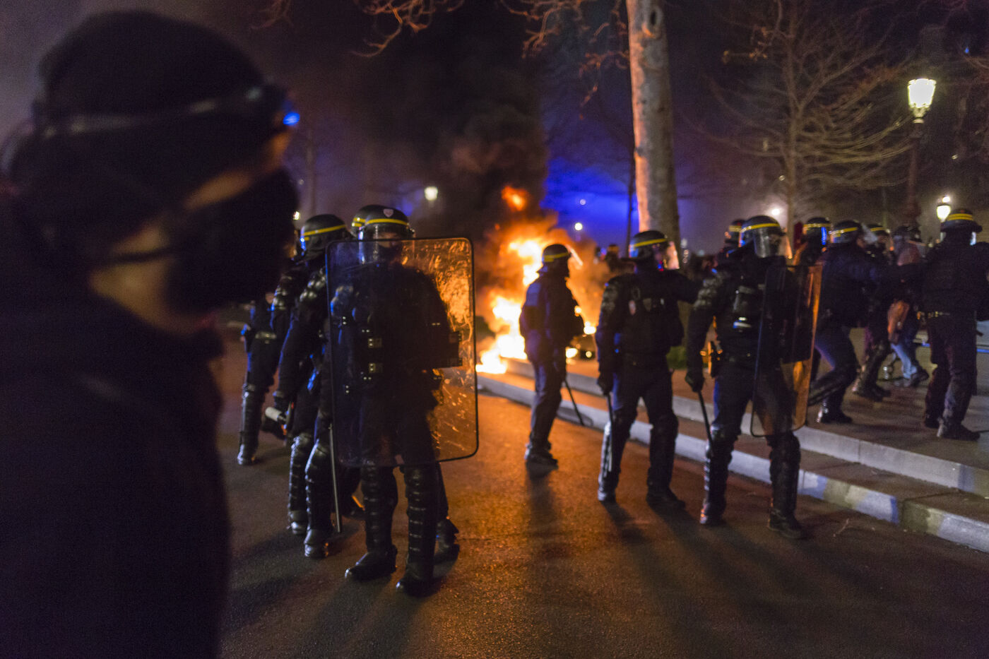Nouveau rassemblement contre la réforme des retraites, ce mardi 21 mars 2023, place de la République à Paris. Des affrontements ont lieu entre forces de l'ordre et manifestants, la police a fait usage de gaz lacrymogène.