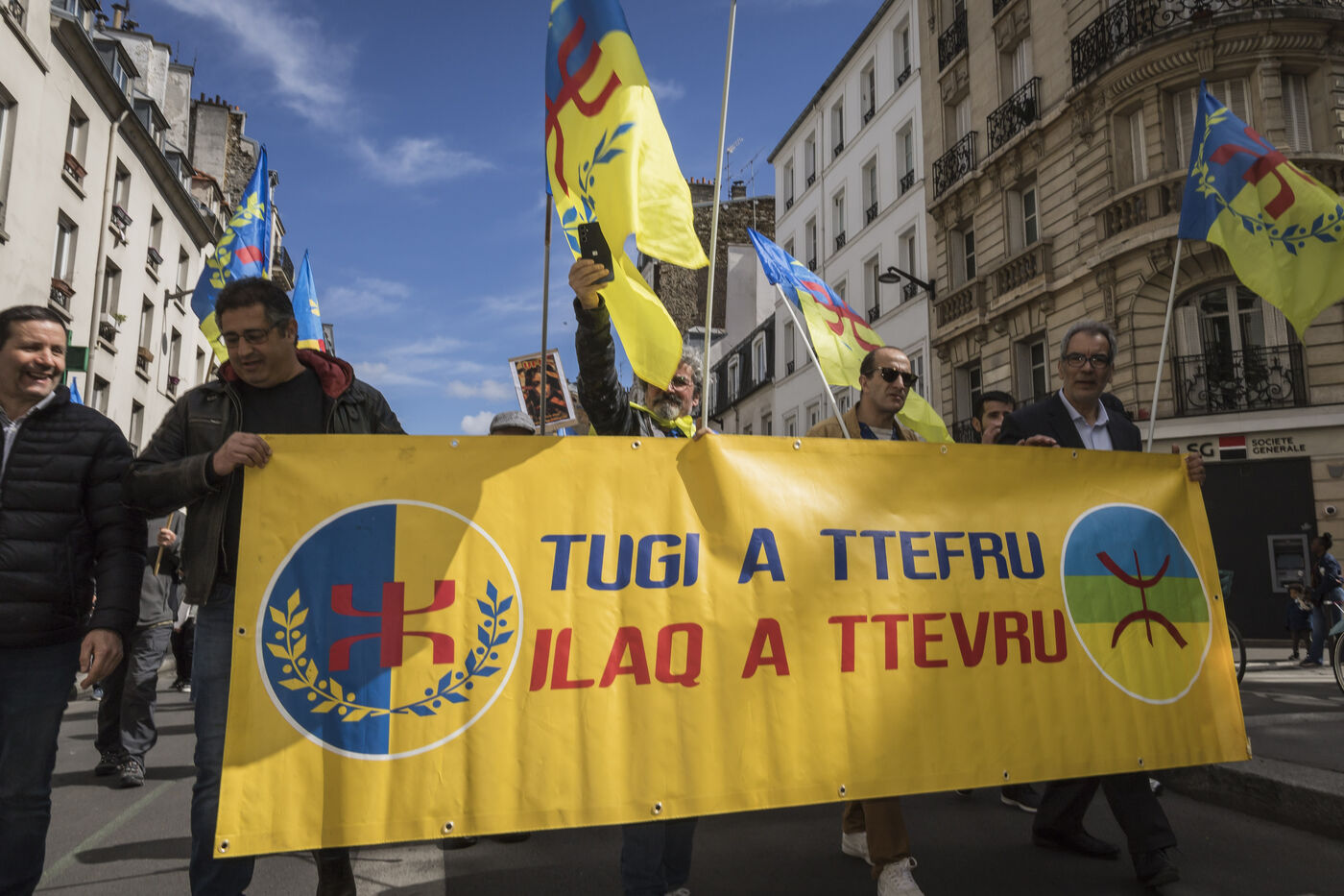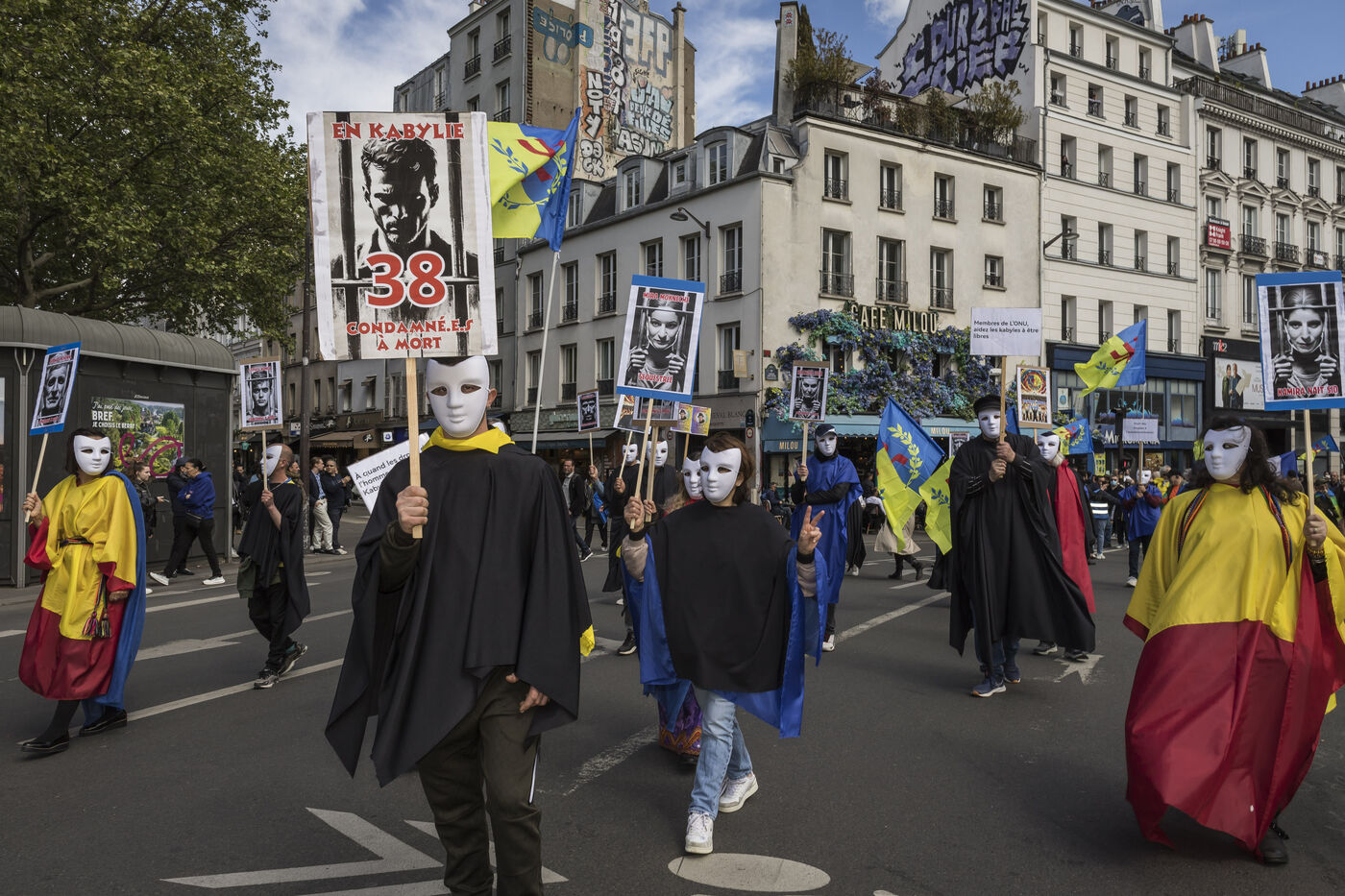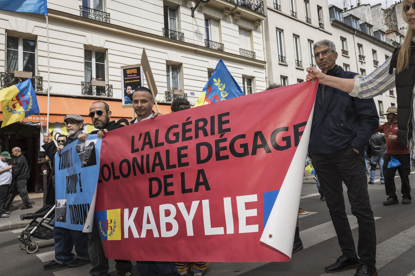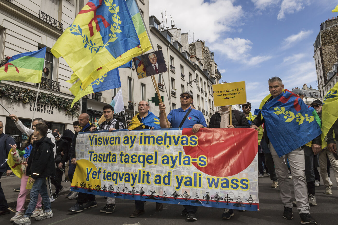 France, Paris, 2025-04-20. Following an appeal by the Kabyle Government in Exile (Anavad) to all its supporters, a peaceful march in favor of Kabylian independence brought together hundreds of demonstrators between Place de la Nation and Place de Bastille. Photograph by Pascal SONNET / Hans Lucas.
