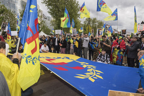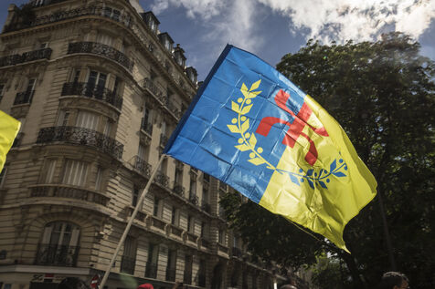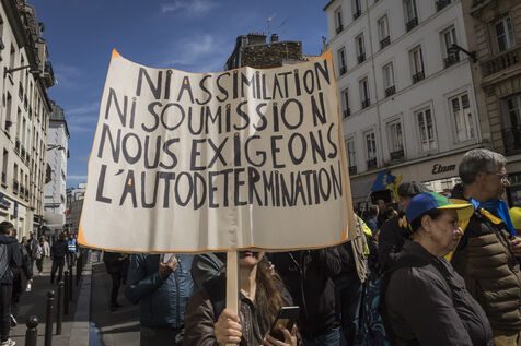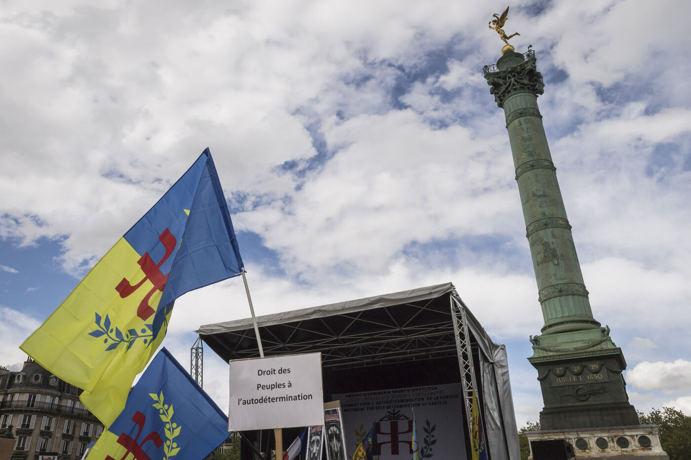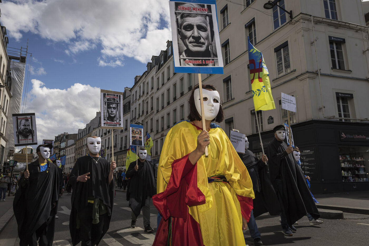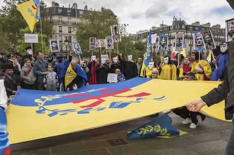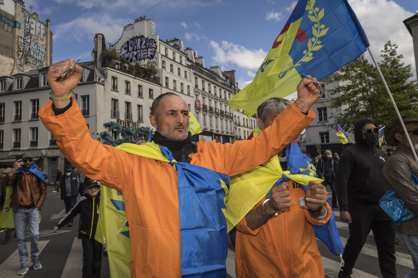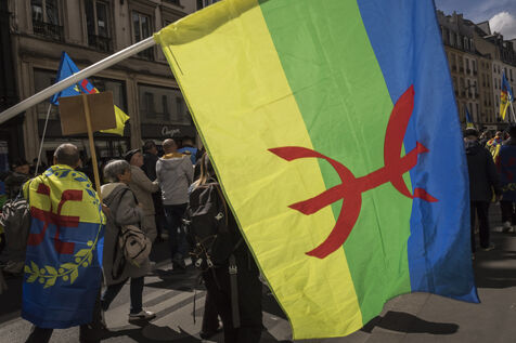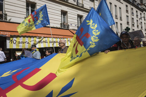 France, Paris, 2025-04-20. Following an appeal by the Kabyle Government in Exile (Anavad) to all its supporters, a peaceful march in favor of Kabylian independence brought together hundreds of demonstrators between Place de la Nation and Place de Bastille. Photograph by Pascal SONNET / Hans Lucas.