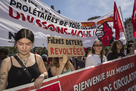 France, Paris, 2025-05-01. La fête du travail et des travailleurs du 1er Mai a réuni des dizaines de milliers de personnes dans les rues de Paris. Photographie de Pascal SONNET / Hans Lucas.