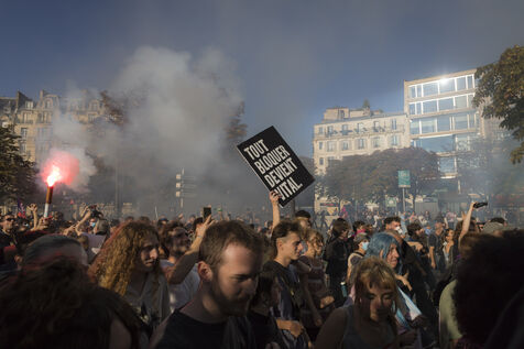 France, Paris, 2025-09-18. La manifestation contre les mesures budgétaires a rassemblée des dizaines de milliers de personnes à Paris. Photographie de Pascal SONNET / Hans Lucas.