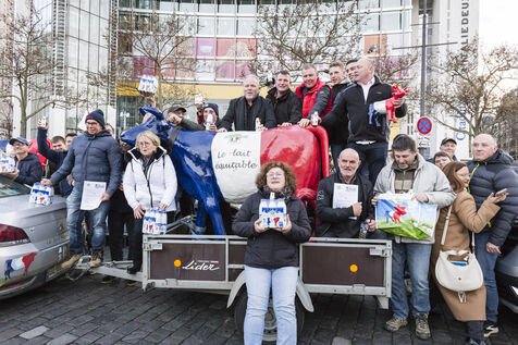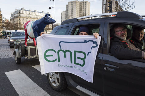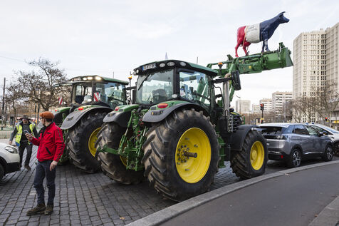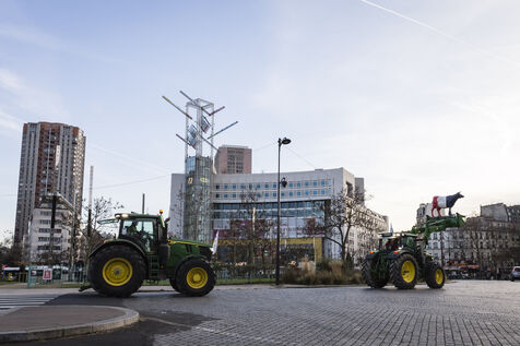France, Paris, 2026-01-15. Des tracteurs et des vaches tricolores, des représentants de la filiere des producteurs de lait, sur la place d Italie. Photographie de Pascal SONNET / Hans Lucas.
