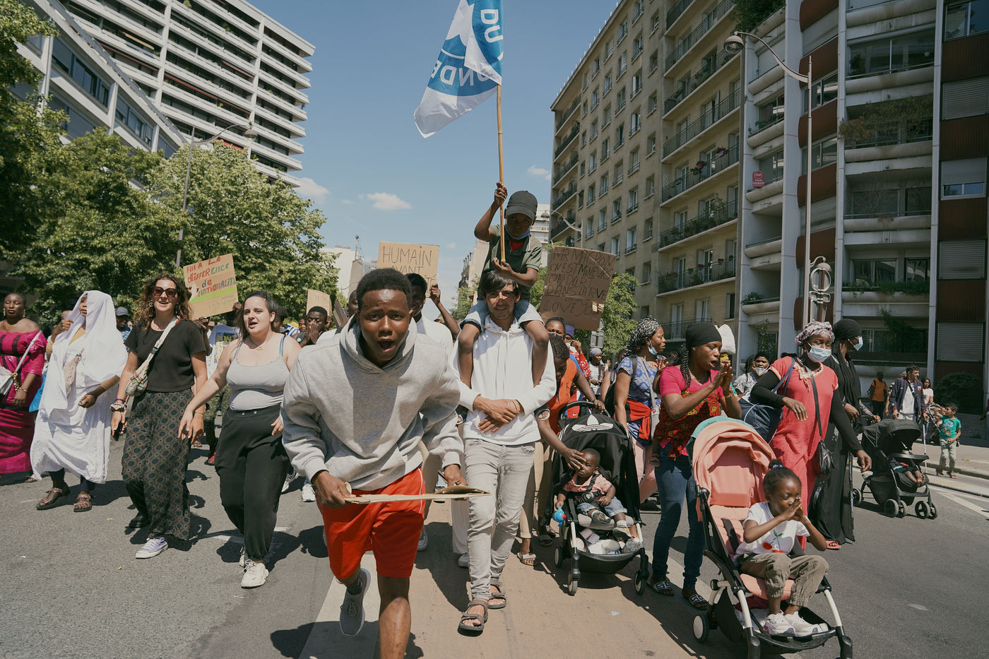 Hundreds of refugee families, unaccompanied minors on the street, single women with children and infants demonstrated on Saturday 9 July in Paris to assert their right to a dignified reception and accommodation. In recent weeks, the accommodation centres set up by the government to receive Ukrainian refugees have been emptying. In the first reception centre located at Porte de Versailles in Paris, between 300 and 500 places are left vacant every night. When asked and alerted by the associations, the State categorically refuses to accommodate all the refugees from other countries.