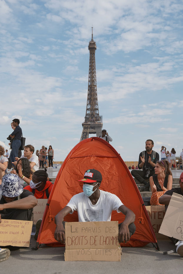 For almost 100 days, a hundred unaccompanied minors have been surviving on the streets in a camp set up at the Place de la Bastille. In spite of the numerous alerts launched by the association on their state of vulnerability, the difficult living conditions and the danger of the street amplified during the days of heat wave and storm, the government did not cease ignoring their calls for help. In spite of their desire to go to school, they are denied this right. Without residency, it is almost impossible for them to access the tests required to attend school.