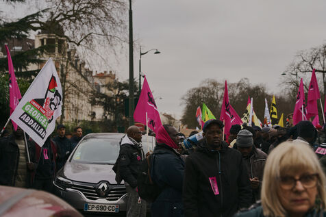 On Saturday 18 February, at the call of the collective "against disposable immigration", which includes Solidaires, Droits devant, the Ligue des droits de l?homme, the PCF and the Nouveau parti anticapitaliste, several thousand people gathered at Porte Dorée, in the 12th arrondissement, to march towards the Vincennes detention centre. On arrival in front of the Vincennes detention centre, several detainees in telephone communication with the collectives testified to the deplorable conditions, police violence, thefts and fights. "We are treated like animals", "A policeman hit me on the back, another one tripped me", "I am locked up here because I don't have my papers up to date. I would like to solve these problems but I can't as long as I am locked up here. During this peaceful march, a man in his fifties was arrested for "obstructing traffic" as he walked alongside the procession. A misunderstood, violent and unjust arrest.