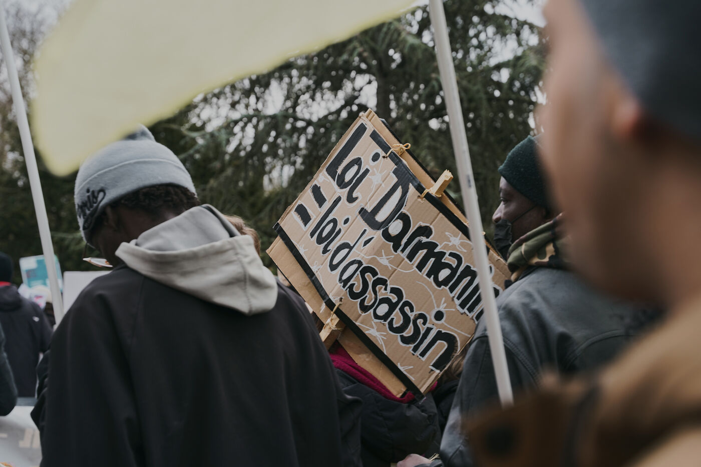 "No to the Darmanin law, against repression, confinement and deportations, for a welcoming migration policy", proclaimed the head banner.