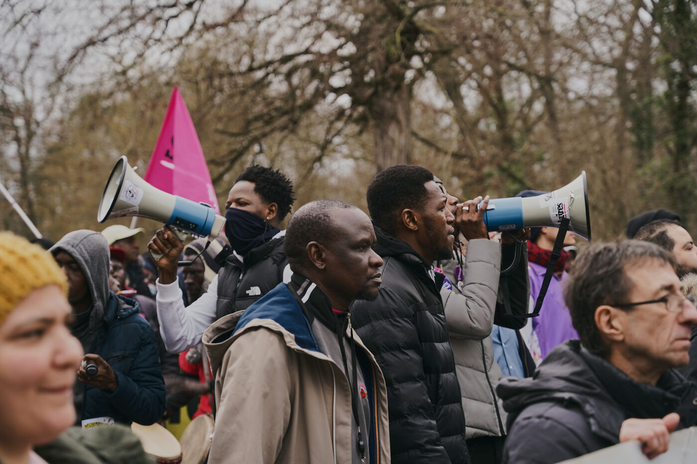 Ce samedi 18 février, à l'appel du collectif "contre l'immigration jetable" regroupant notamment Solidaires, Droits devant, la Ligue des droits de l'homme, le PCF ou encore le Nouveau parti anticapitaliste, plusieurs milliers de personnes se sont rassemblés à Porte Dorée, dans le 12e arrondissement, pour se rendre vers le centre de rétention de Vincennes. Pendant la prise de parole, une représentante a appellé plusieurs détenus qui ont pu témoigner des conditions déplorables, des violences policières, des vols et des bagares. "On est traités comme des animaux", "Il y a des vols et des bagares ici", "Je suis enfermé ici car je n'ai pas mes papiers à jours. J'aimerai régler ces problèmes mais je ne peux pas tant que je suis enfermé ici." Durant cette marche pacifique, un homme d'une cinquantaine d'année a été arrêté pour "entrave à la circulation" alors qu'il marchait pacifiquement le long du cortège. "Non à la loi Darmanin, contre la répression, l'enfermement et les expulsions, pour une politique migratoire d'accueil ", proclamait la banderole de tête.