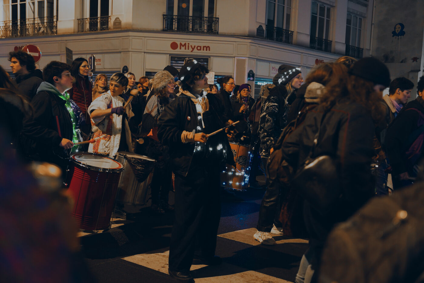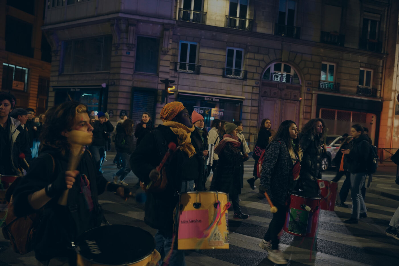 Marche de nuit féministe en non mixité ce lundi 6 mars à Paris à l?occasion de la journée internationale de lutte pour les droits des femmes et minorités.