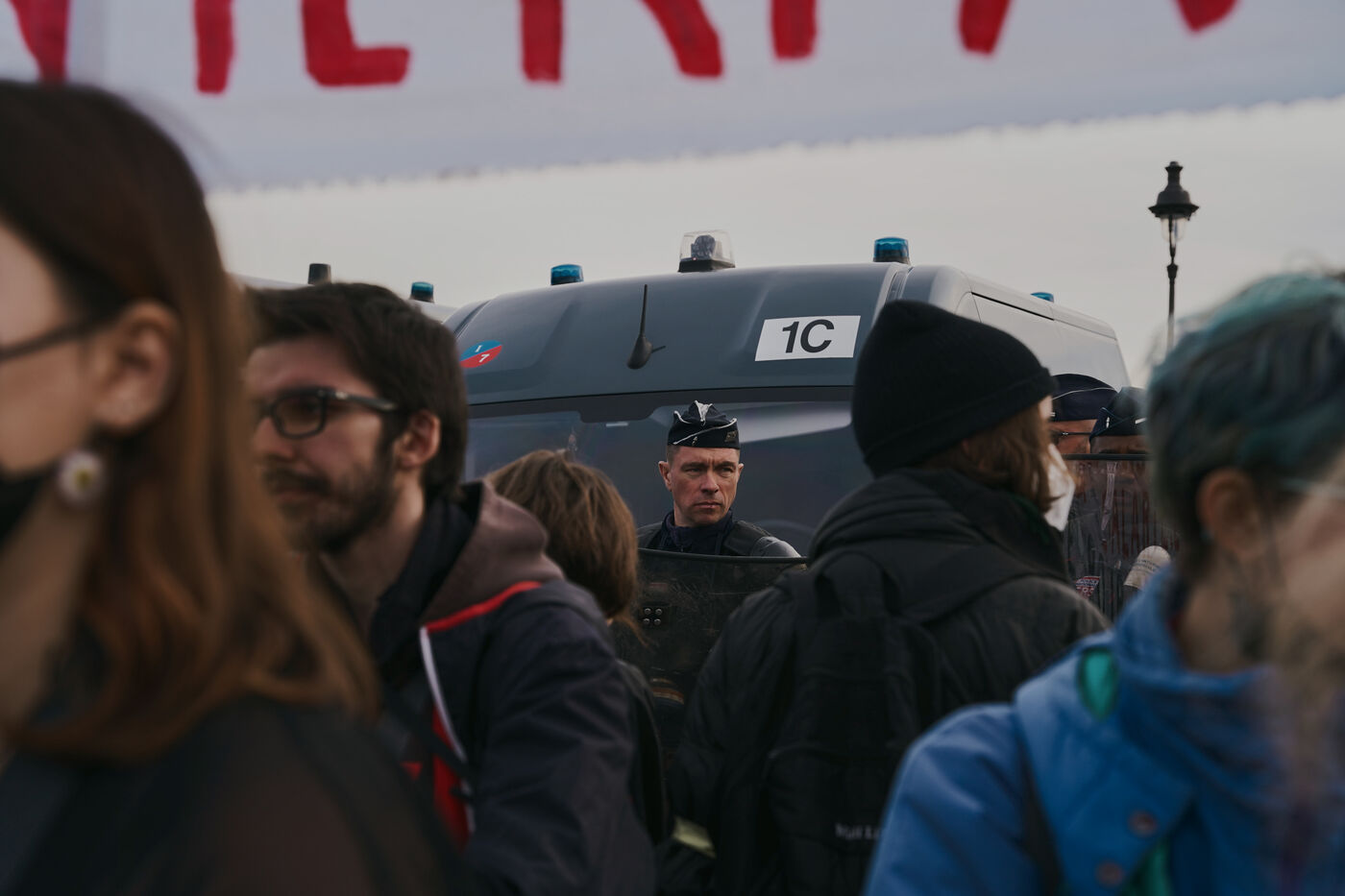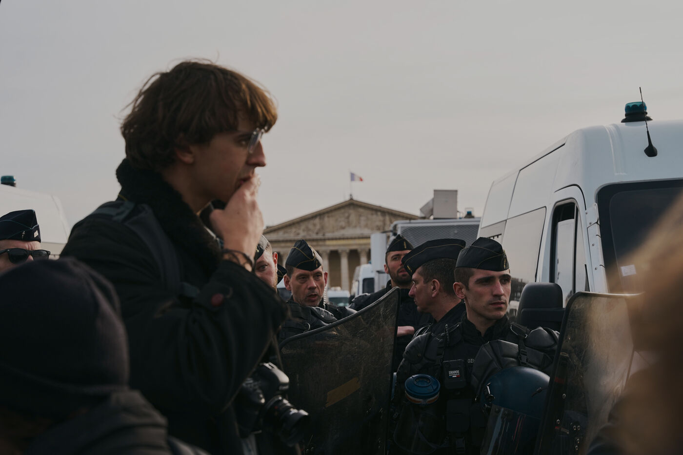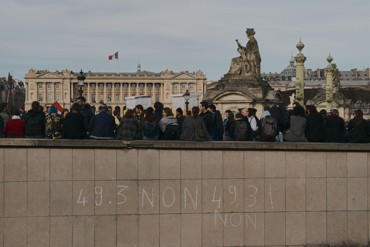 Night of anger and tension on the Place de la Concorde in front of the National Assembly following the announcement of the use of 49.3 by Emmanuel Macron to force through the pension reform without a vote in parliament. Emmanuel Macron prevents the vote in the assembly and passes by force while 70% of French people are against, 9 out of 10 workers are against, he does not have the majority in parliament.
