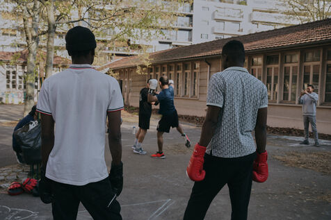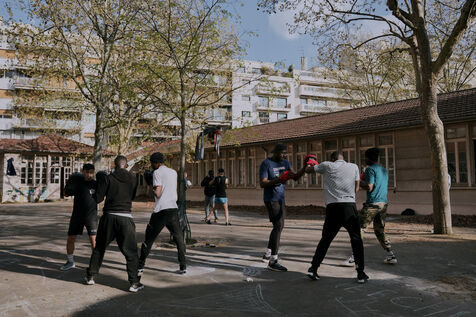 Inside, three members of the Yoga and Sport With Refugees Paris collective are giving a boxing class to unaccompanied minors. It is a time for them to reconnect with their bodies, channel their accumulated fear and violence, rebuild their damaged confidence — and, for a moment, break out of their isolation through shared movement.