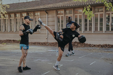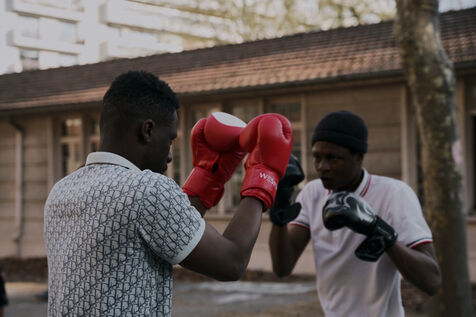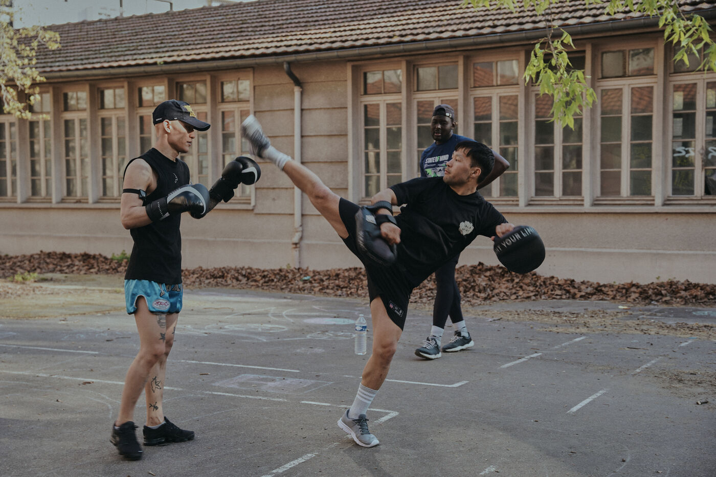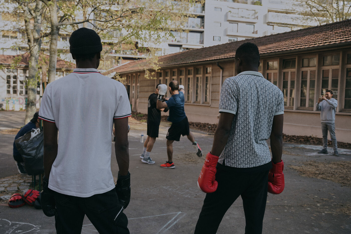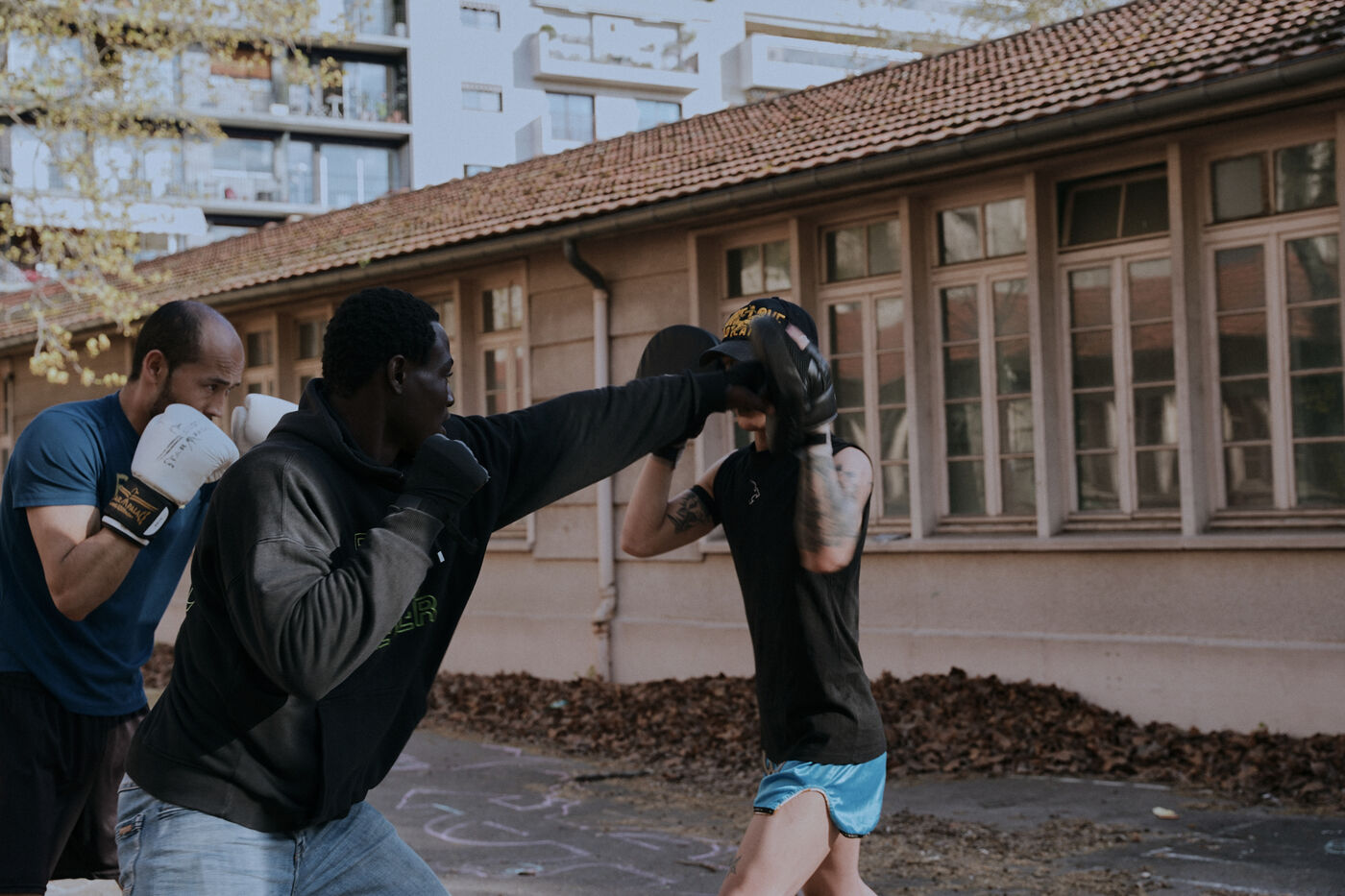 À l’intérieur, trois membres du collectif Yoga and Sport With Refugees Paris donnent un cours de boxe à de jeunes mineurs non accompagnés. Un temps pour reprendre possession de leur corps, canaliser la peur et la violence accumulées, reconstruire une confiance abîmée — et, l’espace d’un instant, sortir de l’isolement par le mouvement partagé.
