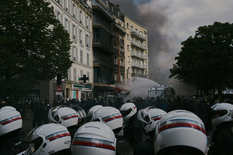 Manifestation du 1er Mai à Paris, fête des travailleuses et des travailleurs, journée révolutionnaire de solidarité internationale contre la répression et treizième journée de mobilisation contre la réforme des retraites.