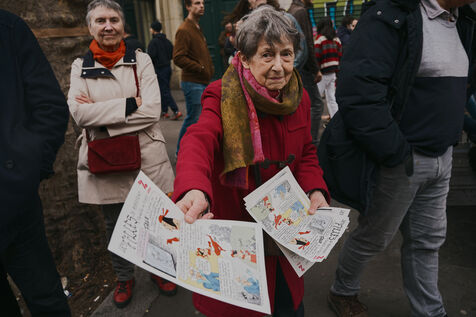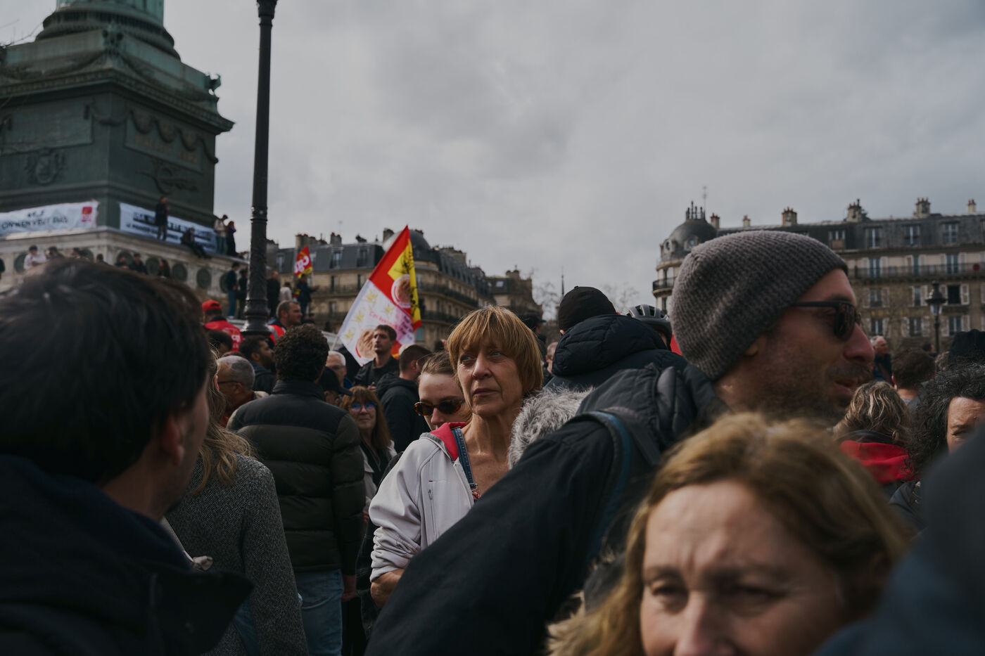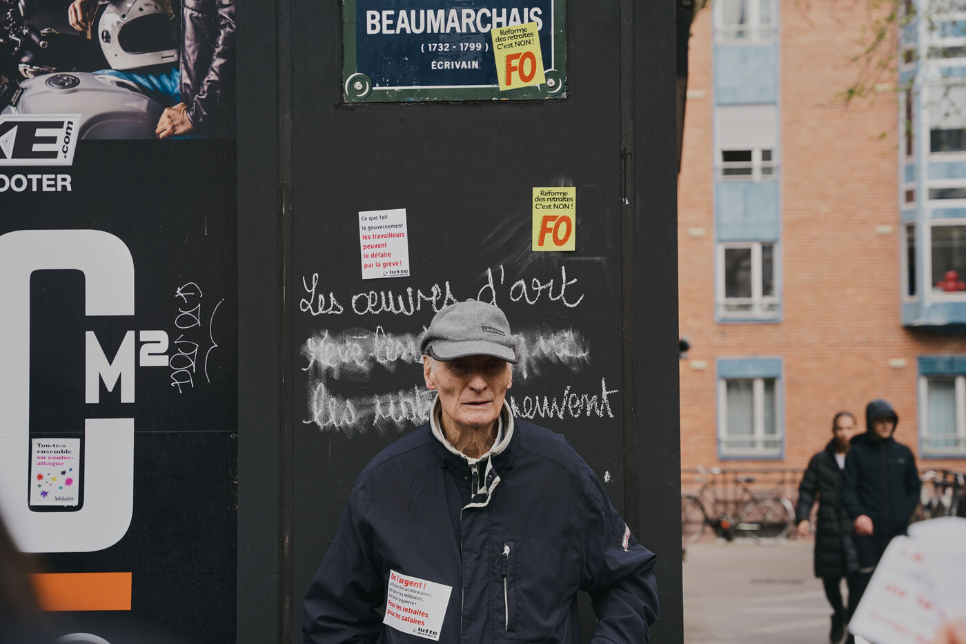 À la manière d’un montage fragmentaire, les photographies ne construisent pas un récit linéaire. Elles juxtaposent les nombreuses mobilisations et rassemblements qui se sont tenus entre janvier et mai 2023 dans l’espace parisien, pour exprimer une colère sociale persistante et interpeller le gouvernement face au rejet largement exprimé de sa réforme.