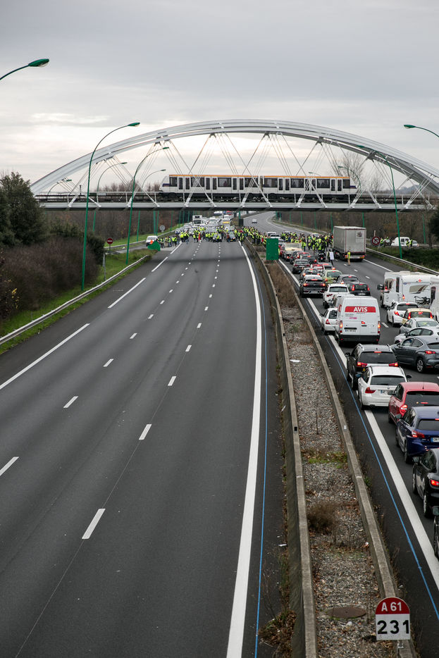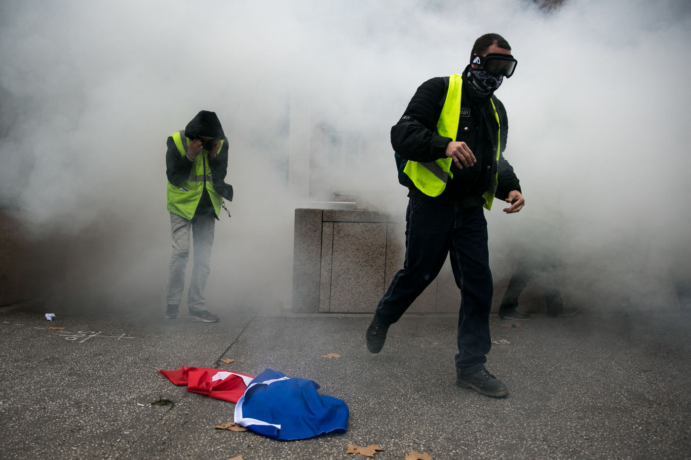 Demonstrations of the yellow vests on 15 December 2018 as part of Act V of their movement. While the roadblocks were calm, the demonstration in the centre of Toulouse, which according to the prefecture gathered more than 4,500 people, quickly spread after tear gas from the police forces.