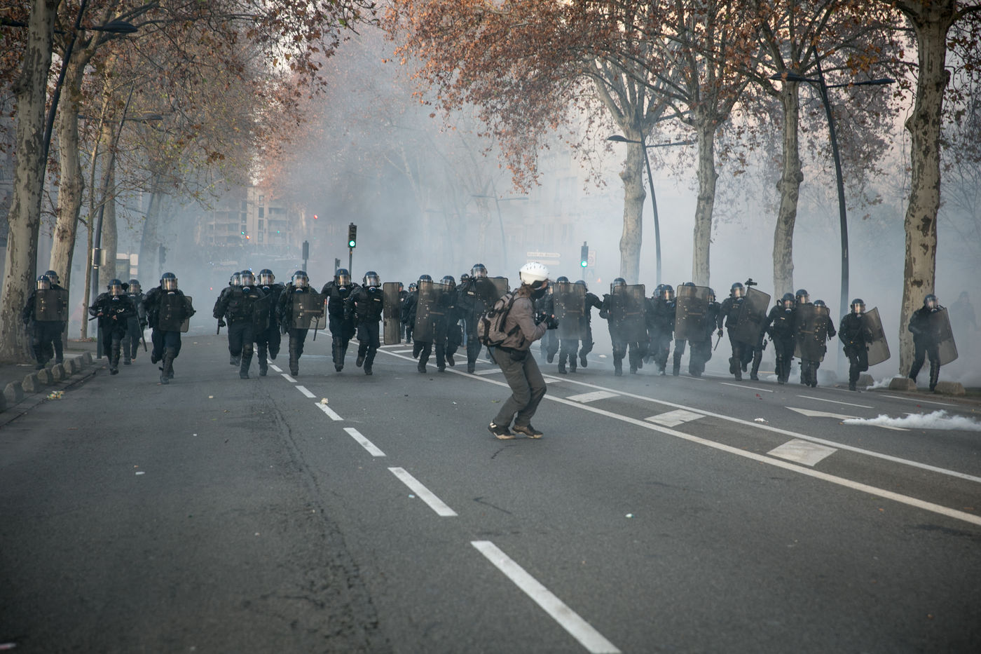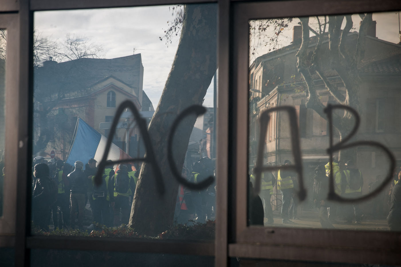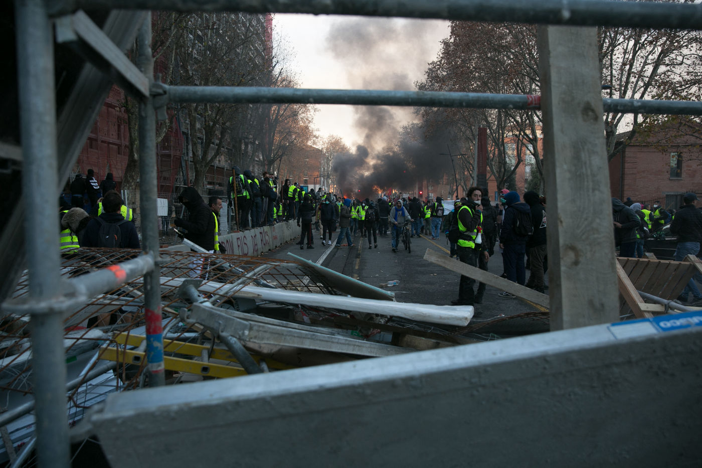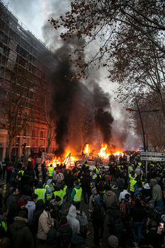 Manifestations des gilets jaunes le 8 décembre 2018 dans le cadre de l'acte IV de leur mouvement. A Toulouse, une manifestation réunissant plusiers milliers de personnes dégenère rapidement en guérilla urbaine.