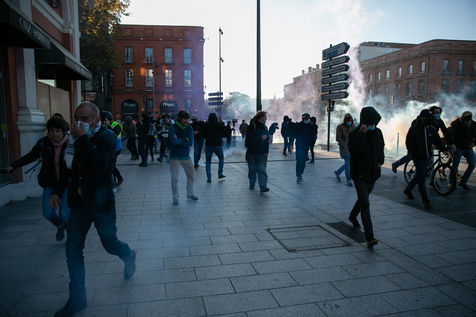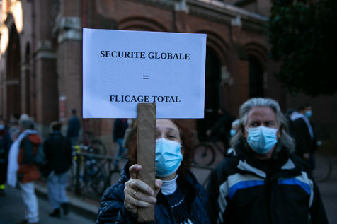 In full confinement, several thousand people demonstrated in Toulouse against the government's health policy, the so-called "global security" law and to demand more resources for the public hospital, 21 November 2020.