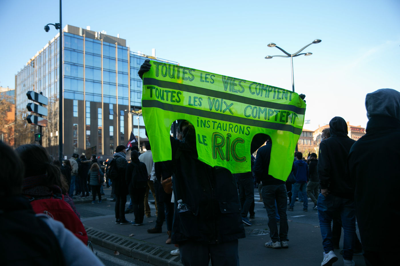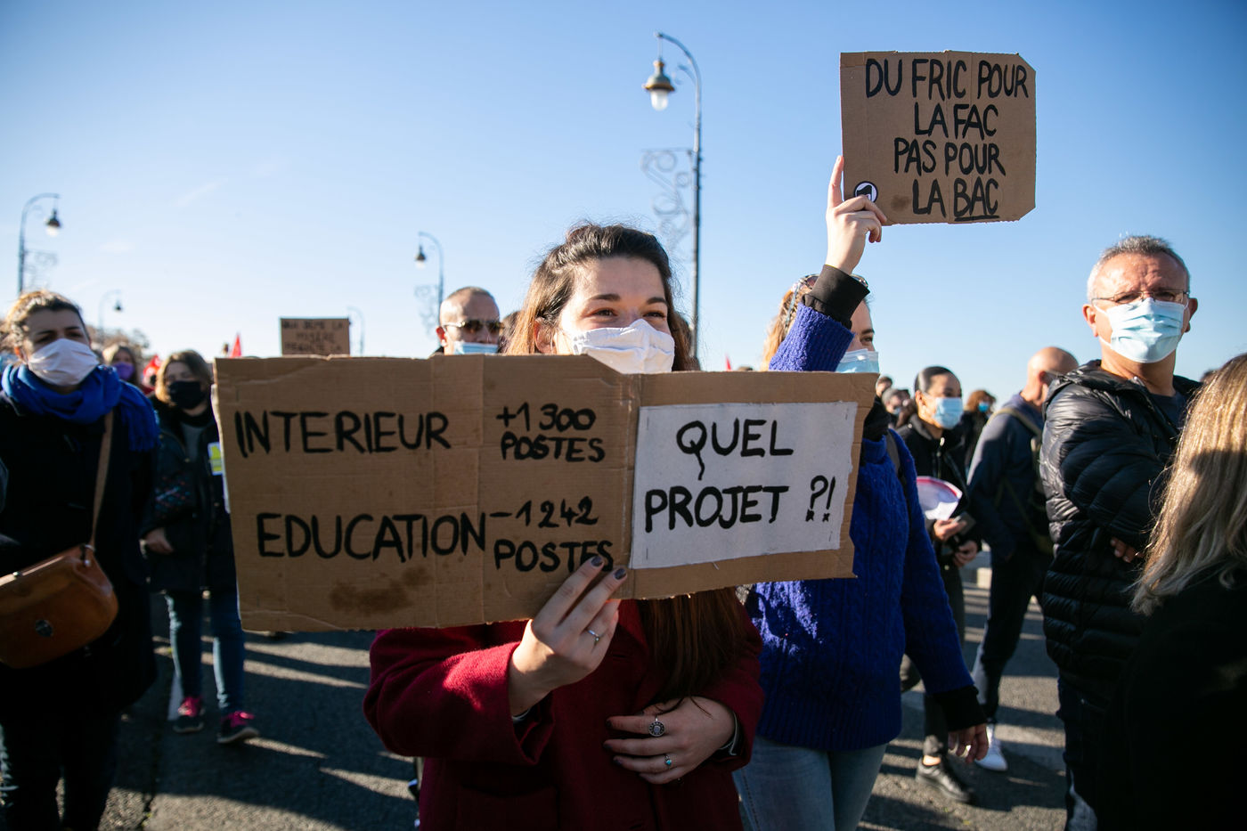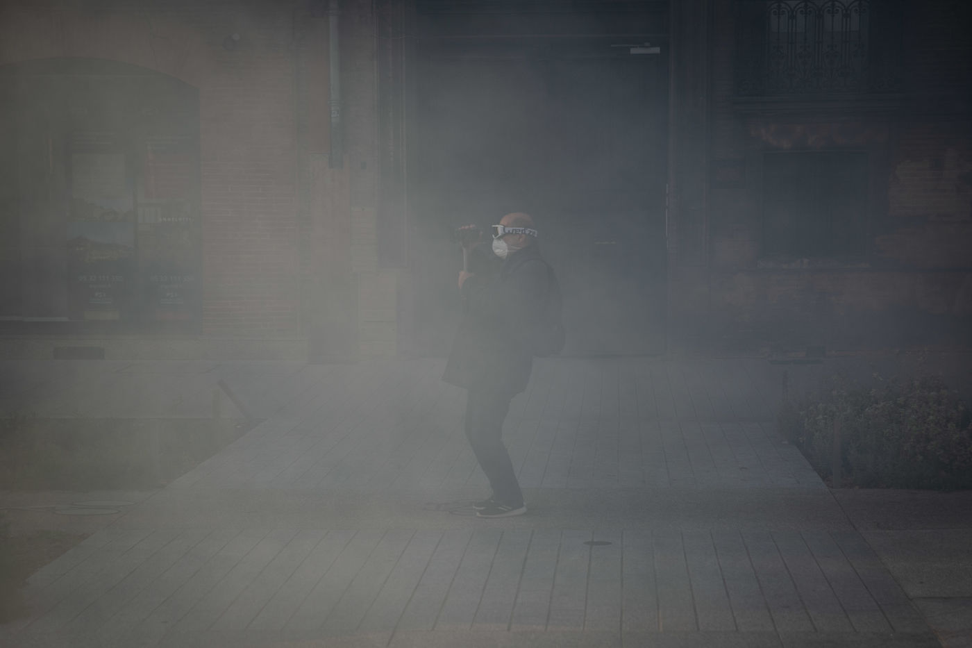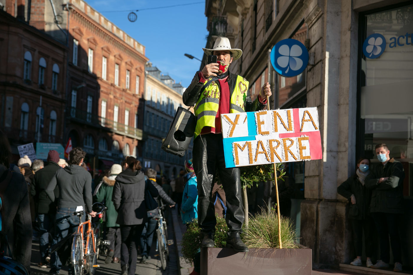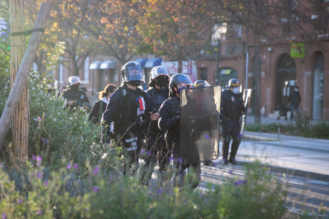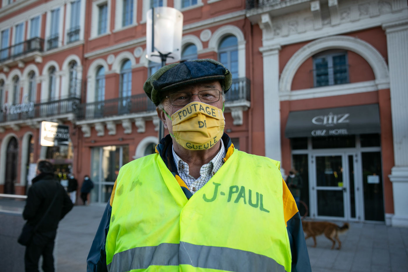 En plein confinement, plusieurs milliers de personnes ont manifesté à Toulouse contre la politique sanitaire du gouvernement, la loi dite de "sécurité globale" et pour demander plus de moyens pour l'hôpital public, 21 novembre 2020.