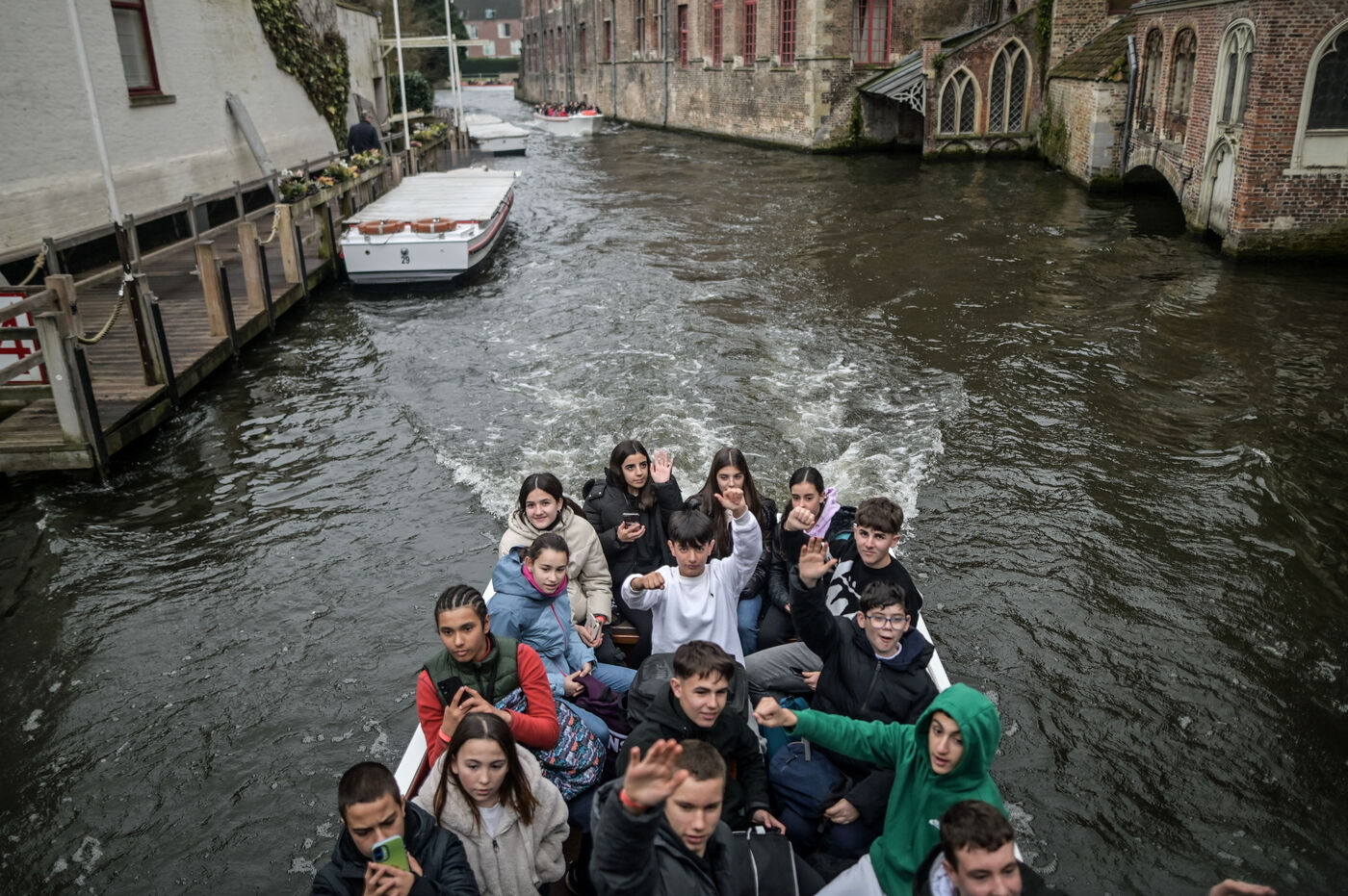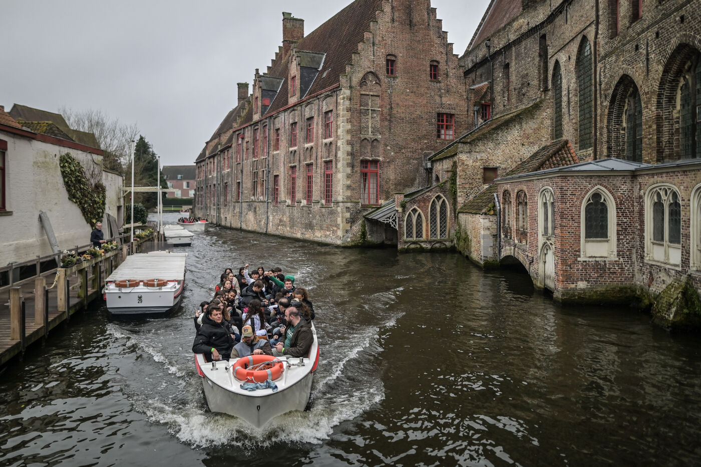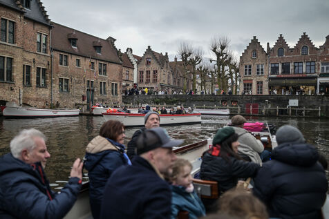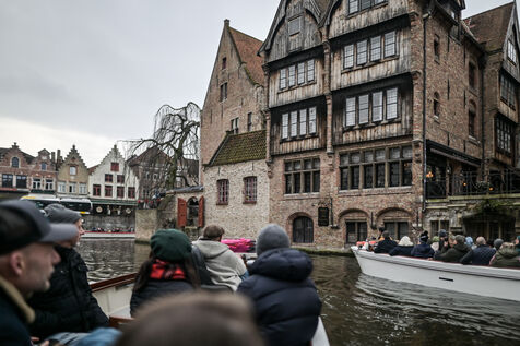 Bruges, la Venise du Nord, attire les visiteurs pour une balade en bateau à travers ses canaux pittoresques. À bord des embarcations touristiques, les passagers admirent les façades médiévales en briques, les ponts de pierre et les reflets des maisons historiques dans l’eau sombre. Sur la rive, des groupes de visiteurs arpentent les ruelles pavées, s’attardant sur les ponts emblématiques, offrant une vue unique sur les canaux sinueux et les bâtisses d'époque.