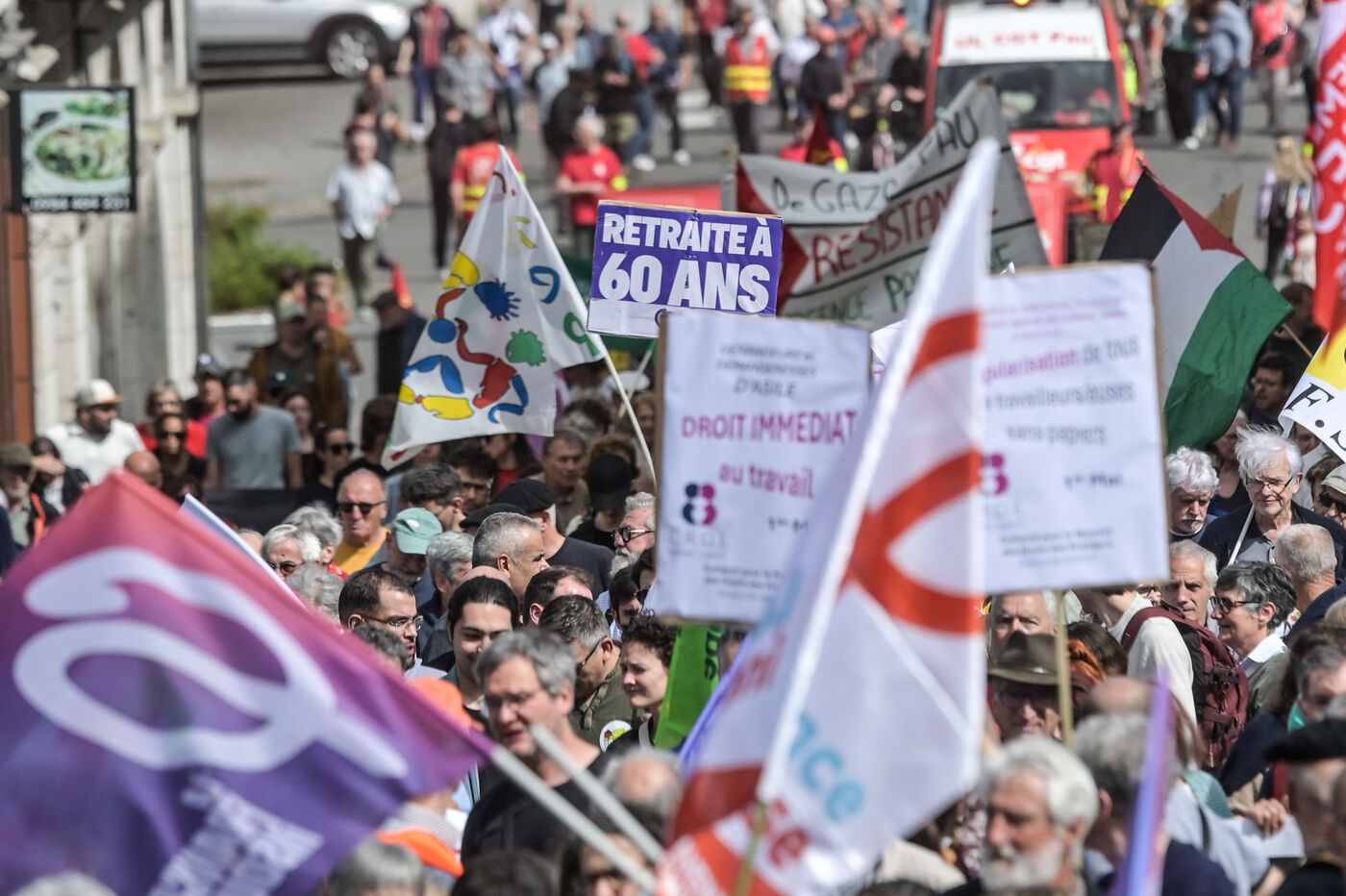 Pau, May 1, 2025 — Inter-union demonstration: Several hundred people marched through the city center on International Workers' Day. Union banners, speeches, protest signs, and social mobilization punctuated this demonstration, called by the CGT, FO, FSU, and Solidaires unions. Employees, students, and retirees were present to protest working conditions and pensions, and to defend social rights.