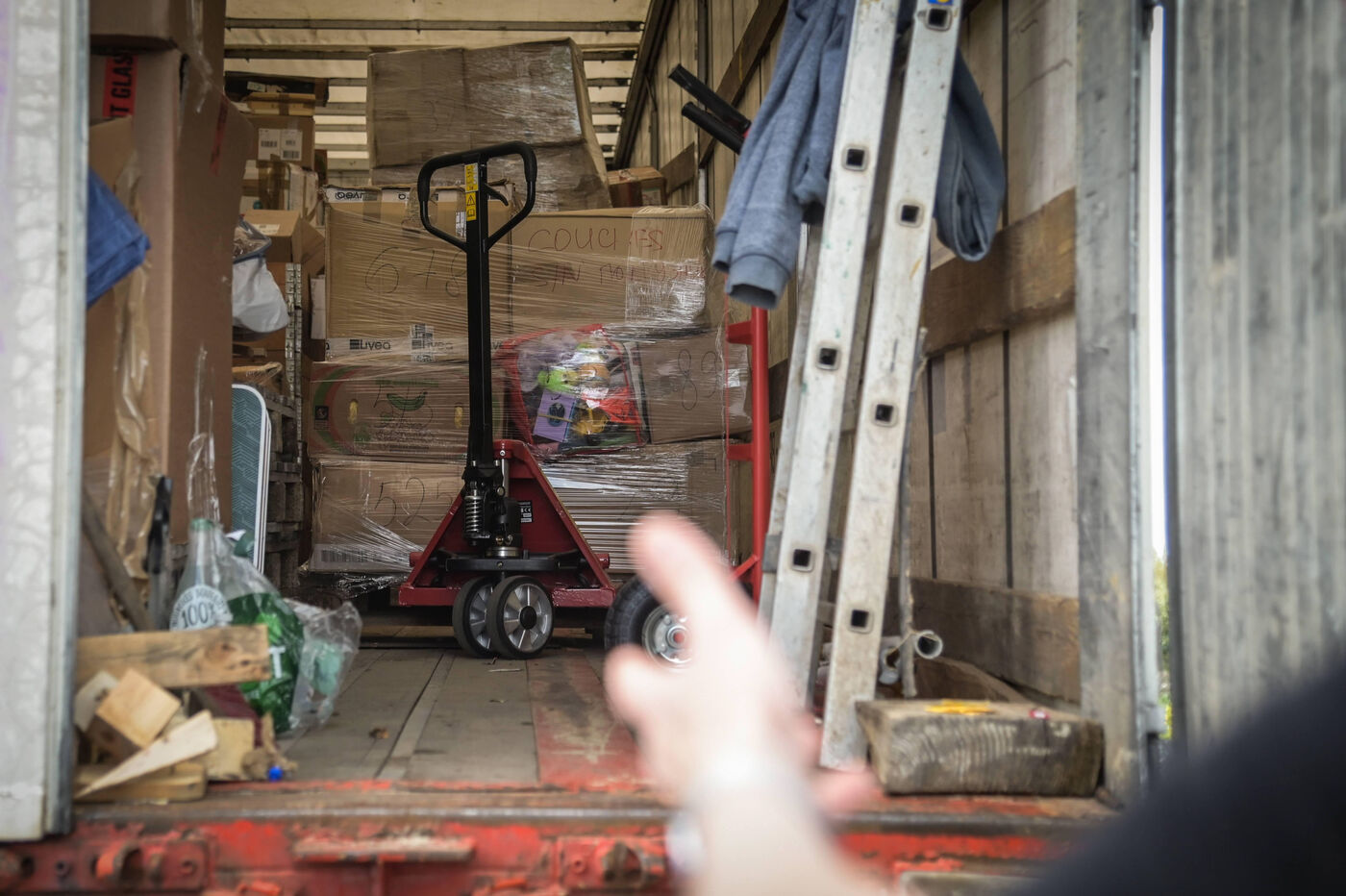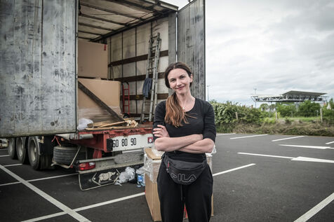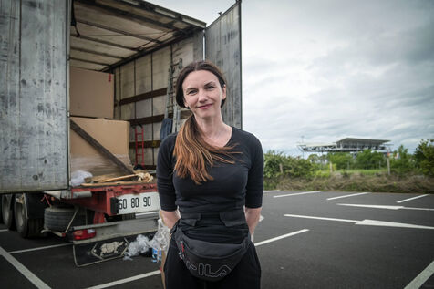 Anna Novikova une ressortissante russe dirigeante de SOS Donbass sur le depart pour le dombass avec un camion d aide humanitaire a Pau en France le 25 avril 2023 . Soupconnee d espionnage pour Moscou elle a ete place en detention provisoire. Arretes le 17 novembre 2025 apres 96 heures de garde a vue.