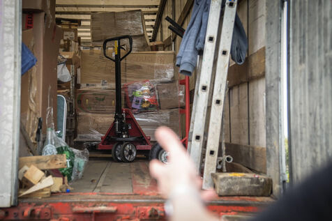 Anna Novikova, a Russian national and leader of SOS Donbass, is seen departing for the Donbas region with a humanitarian aid truck in Pau, France, on April 25, 2023. Suspected of spying for Moscow, she was placed in pretrial detention. She was arrested on November 17, 2025, after 96 hours in police custody.