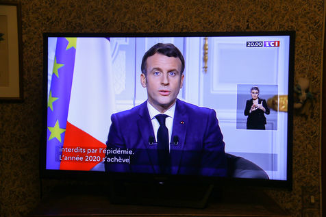 Voeux d'Emmanuel Macron le 31 décembre 2020, ce dernier rappelant la crise sanitaire dans le pays.