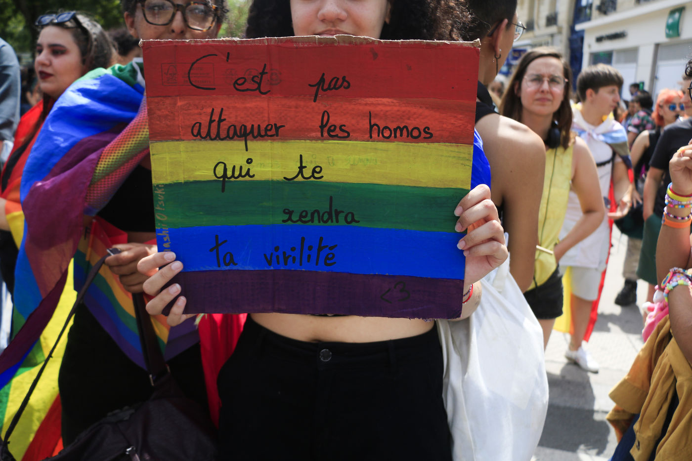France, Paris, 2022-06-19. Le cortege de manifestants de la seconde edition de la Pride Radicale dans la capitale. Photographie de Quentin de Groeve / Hans Lucas